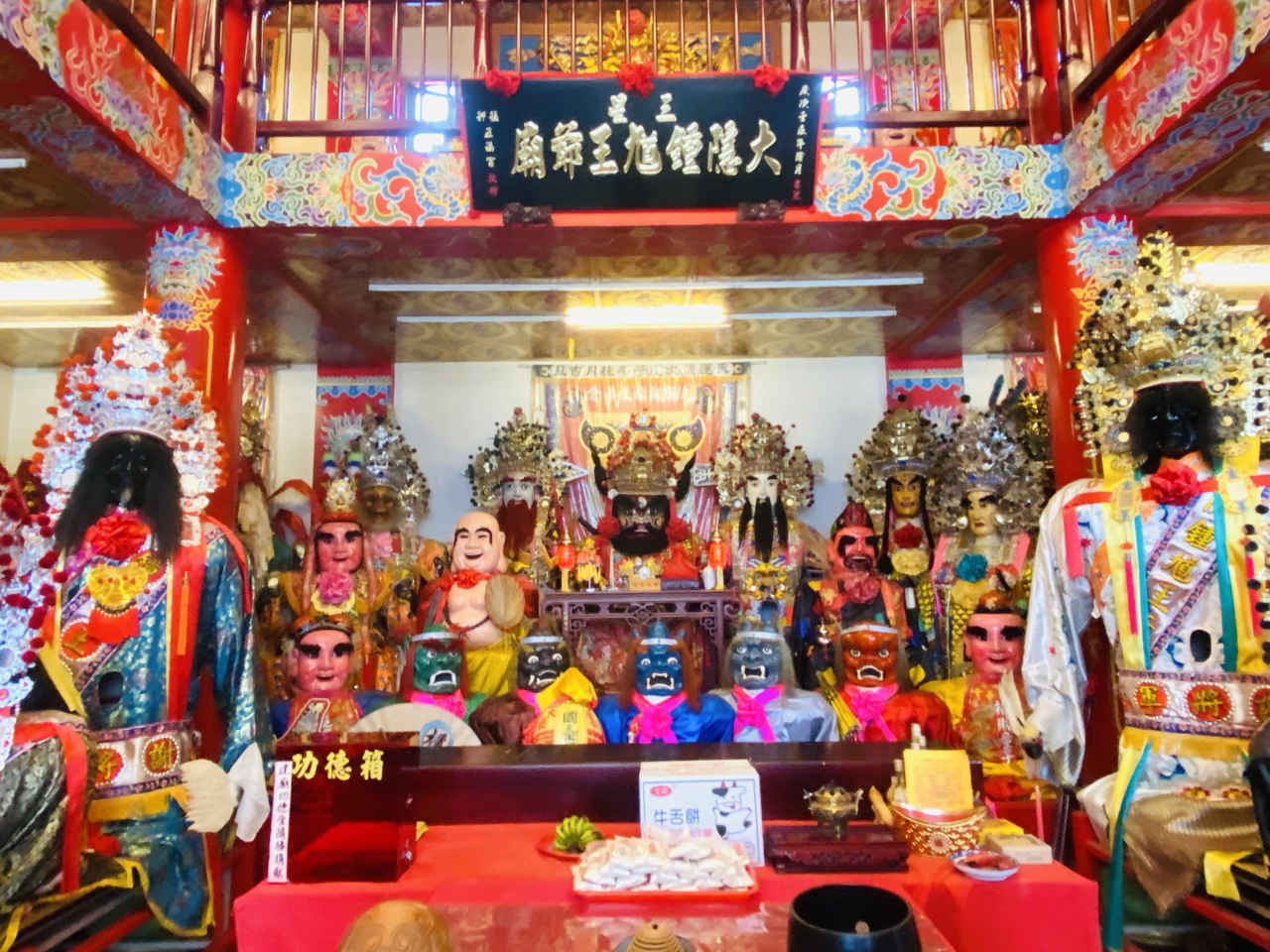 台湾では数少ない、伏魔大帝天師鍾馗王爺を祀る廟。神像ではなく、神将を主祀している点も珍しい。さらに、46体もの神将を祀っていることも特筆できる。ただ、最寄駅である羅東から行く場合、1日に数便しかないバスかタクシーを利用することになる。また、近辺に他のスポットがあるわけでないので、わざわざ行くということになる。したがって、時間にゆとりがあり、ゆっくり旅を楽しみたい場合にのみお薦めできるスポット。廟主はとても親切な方ではあるが、日本語は解されないので、その点にも注意。なお、この地域はネギの生産でとても有名。自宅へ持ち帰り、牛肉と炒めたり、卵に入れて焼いたりして食べた。ほのかに甘味のある絶品だ。
