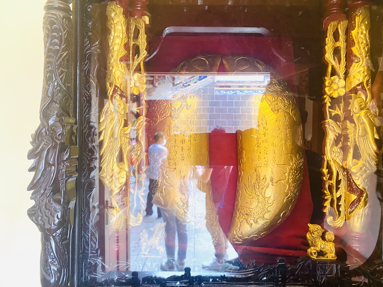 友人から勧められて訪れた道教寺院。元々、五府王爺を祀る「五安境廟」という廟であったが、1884年の大地震の際、玄天上帝から避難するようお告げがあり、そのため、地元民は皆無事であった。それを感謝し、「震安宮」と改名して、主祀神が玄天上帝に改められた。廟の規模は大きくはないが、職員がとてもフレンドリーで、1本残ったお香を手にしていたとき、お参りするべき神明の場所を自発的に親切に教えてくださった。廟の前には文化公園があり、夜市からも近い。
