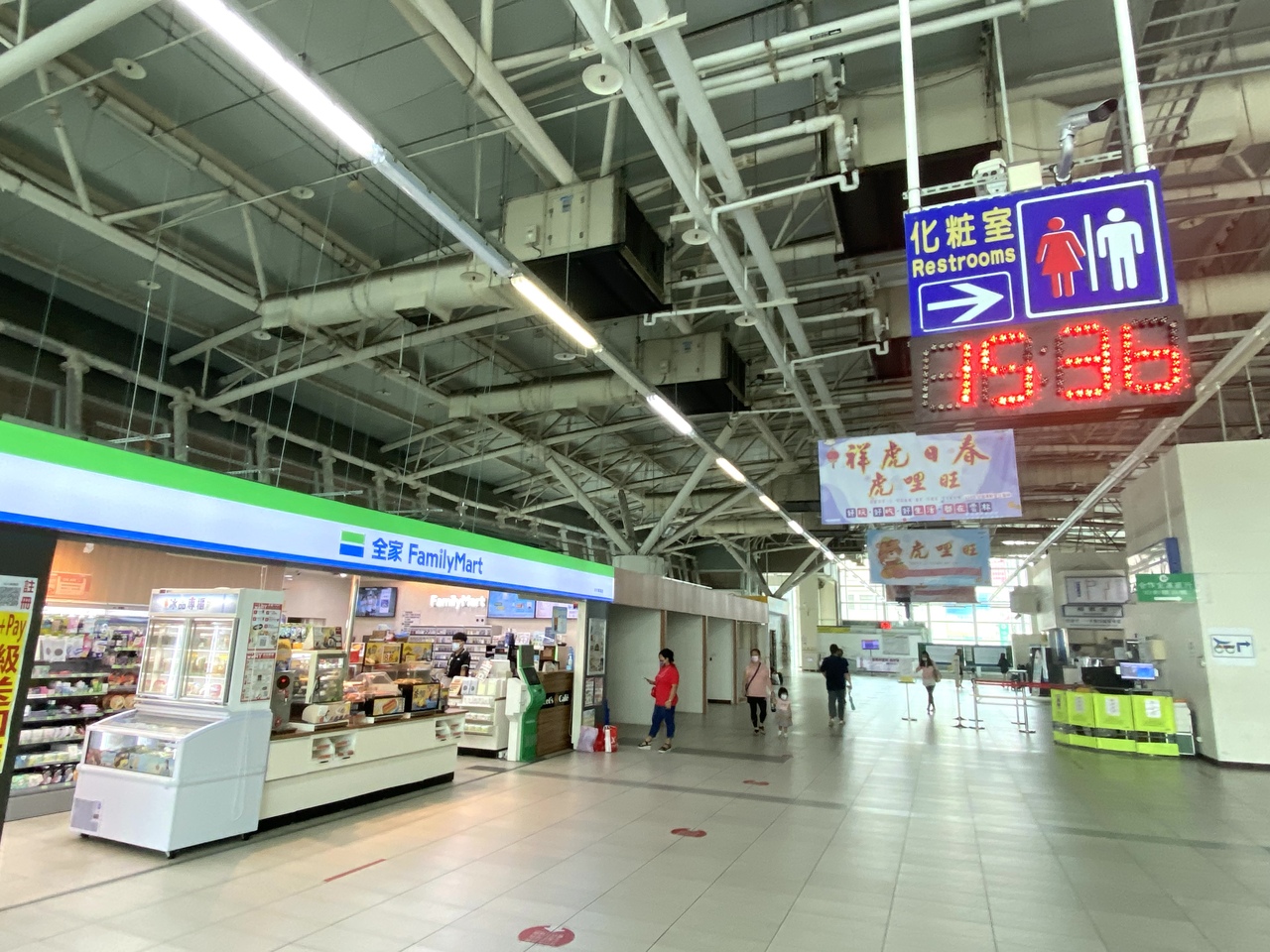 宜蘭県で宜蘭市に次いで多くの人口を有する羅東の駅。宜蘭からは各駅停車の電車で10分程度。1階にはコンビニ、コインロッカーがあり、2階にはモスバーガーなどがある。また、東側の出口の近くには羅東バスターミナルがある。台北からは電車でもバスでも羅東に行けるが、宜蘭へ向かう高速5号線は非常に混雑しやすい。特に、トンネル内で事故が発生すると、数時間もかかってしまう場合がある。バスの方が電車より速く、料金も安いが、週末などに重なる場合は鉄路で往復するのもいいかもしれない。宜蘭や礁溪に宿泊し、有名な羅東夜市へ行くなら、電車が便利。