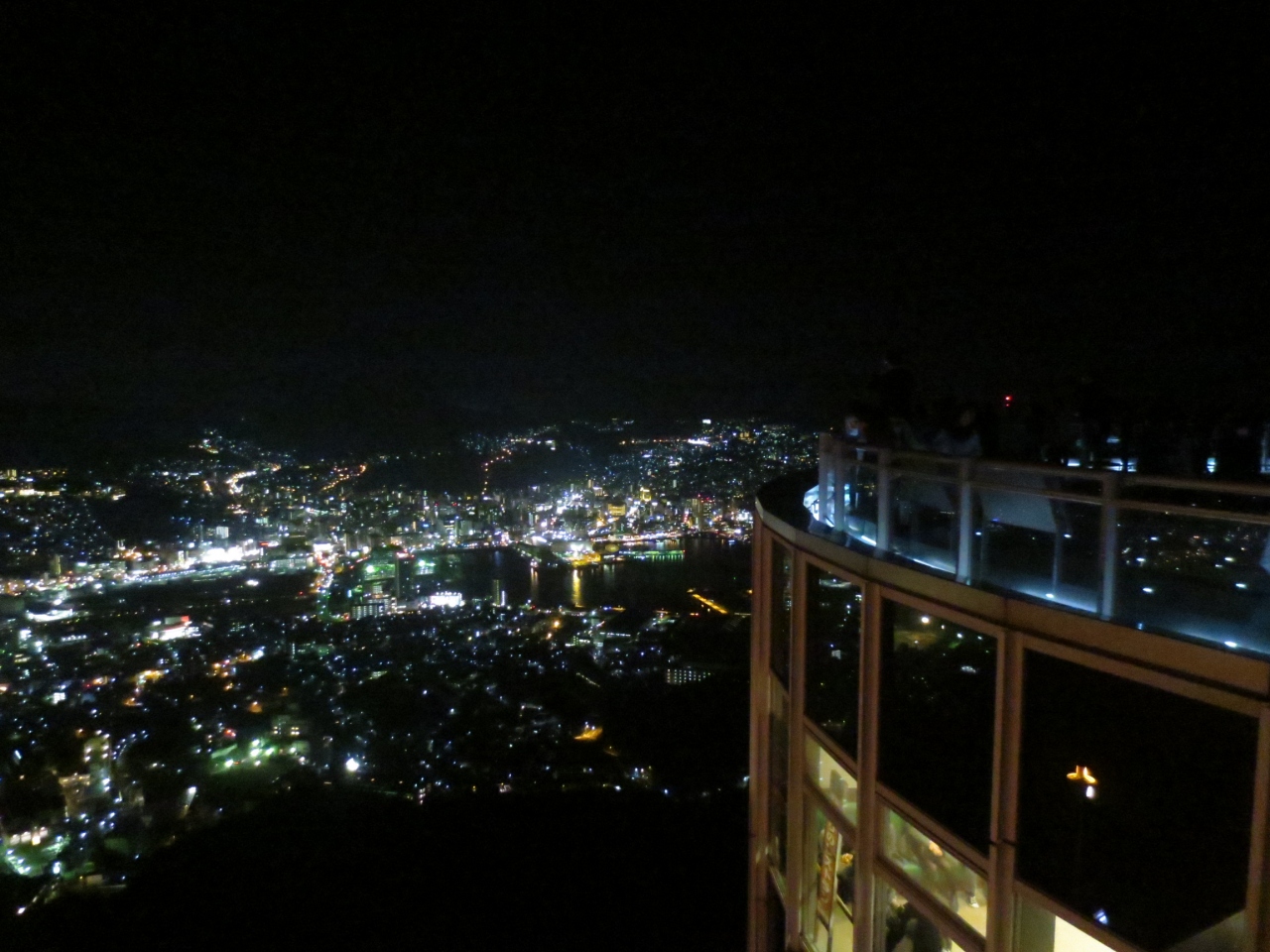 稲佐山展望台に行く方法はいくつかあるが、バスツアーを薦める。自分の宿泊しているホテル(あるいはその近くのホテル)まで送り迎えをしてくれるほか、直接展望台まで行ってくれるので、ロープウェイを待つ時間も必要ない。さらに、ガイドさんが乗車し、展望台への行き来の間、ガイドもしてくれる。特に、高齢者や足腰の弱い人はバスツアーを選択するとよいだろう。それから、中国におけるPM2.5などによる深刻な大気汚染の発生し、その影響を受け、長崎のPM2.5濃度も上昇することがよくある。この数値が高いと、よい夜景も見られないようだ。天気予報で確認してから、夜景を見る計画を立てたほうがよいだろう。