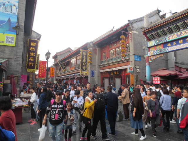 イタリア租界地にあった建物を保護し残しているエリア。建物は確かに美しいし、イタリアへ来たような気にもなるが、なにしろ観光客の数が夥しい。ロマンチックさを求めるなら、海河のほとりで夜景を見るほうがいいかもしれない。狗不理の肉まん、煎餅、炸糕などの天津の名物を売る店もある。
