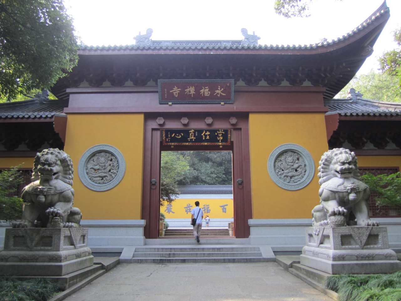 霊隠寺の少し奥に永福寺というお寺があります。霊隠寺と異なり、こちらまで来る人は非常に少ないのですが、山内はとても静かで一番高いところまで行けば、西湖を望むこともできます。霊隠寺を歩くだけでも十分疲れるのですが、ぜひこの永福寺もお訪ねください。