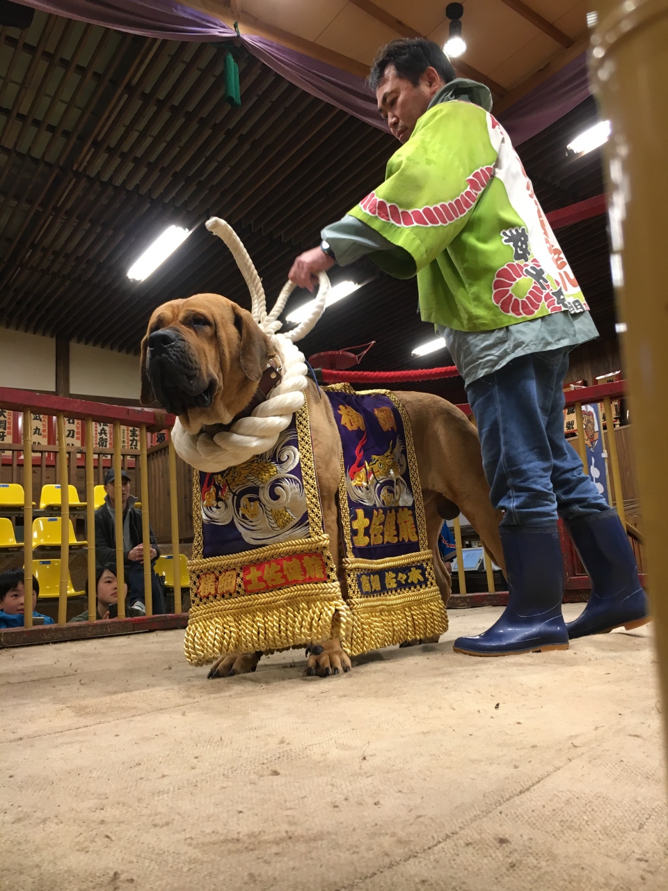 闘犬が見たかったのですが週末しか開催されていないとのことで、横綱の土俵入りと子犬ふれあいツアーというのを申し込みました。