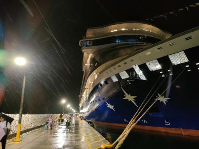 午前7時すぎ、雨の中ラブリオン港にて下船。4日前に我々が乗船した港。前...