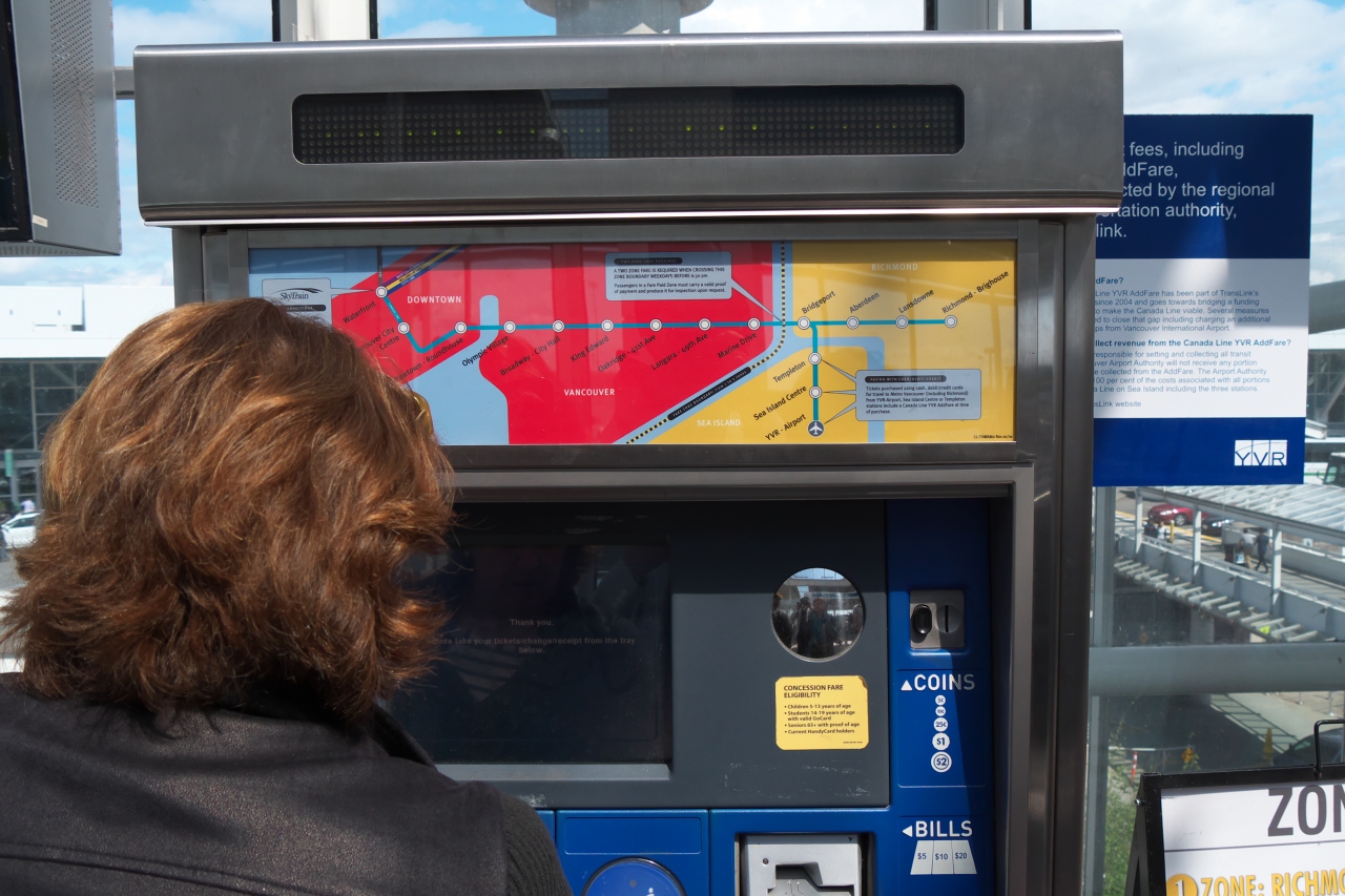 ホテルをカナダラインの終着駅傍に予約したので、これを利用しました。駅までの導線もわかりやすく、自動券売機も日本語表記が出来ます。終点のウォーターフロント駅までは2ゾーン料金です。90分以内ならシーバス、素いないバスにもそのまま乗れます。1日券を買えば乗り放題になります。バスの乗り方もわかりやすいので、市内観光するには胃に知見がいいと思います。