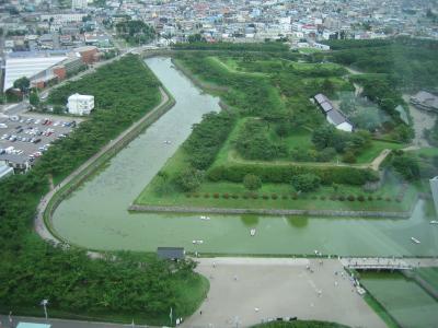 五稜郭は大変大きな城のため、全容を見ようと思ったらこのタワーに上ることをおすすめします。その特徴的な形状を一望のもとに眺めることができます。展望台まではエレベーターですぐ。帰りは1フロア下から下りのエレベーターに乗ることになります。まわりにはラッキーピエロなどもあり、食事も楽しめます。