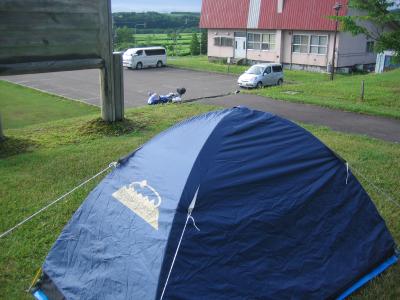 北海道ツーリングの途中、温泉施設と同じ敷地内にあるキャンプ場に泊まりました。すっごくきれいなサイトで、お風呂は温泉施設で入りました。施設はきれいな建物ですが、まわりに温泉街とか一切ないところなので、さびしく感じるかもしれません。駅も1両がやっとくらいのホームしかありません。