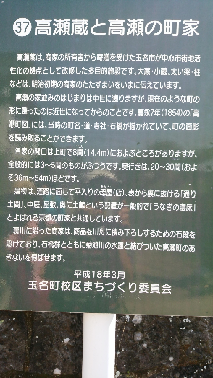 この付近は高瀬蔵など昔の面影があっていいところである。すぐ近くには菊池川があり船着き場跡がある。