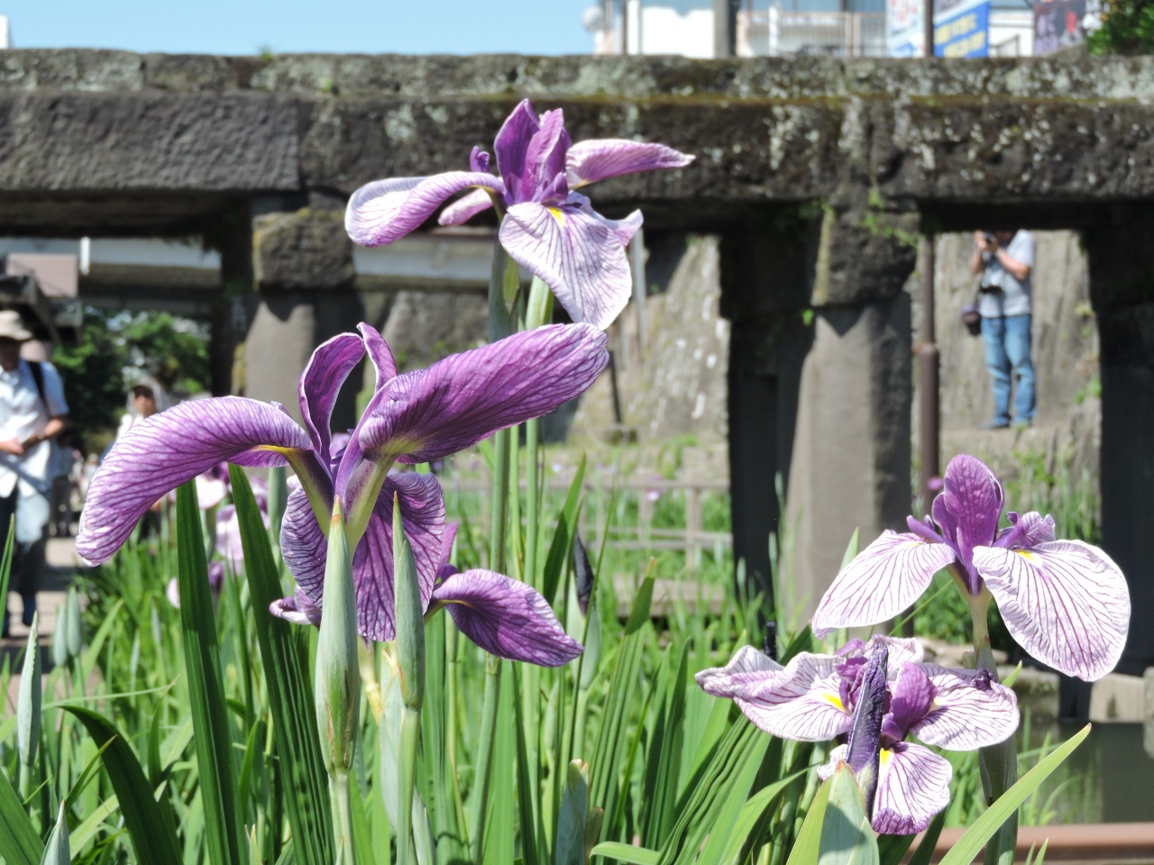 この日も花しょうぶ祭りが行われていて賑わっていたが、花しょうぶは少し早くて一部しか咲いていなかった。