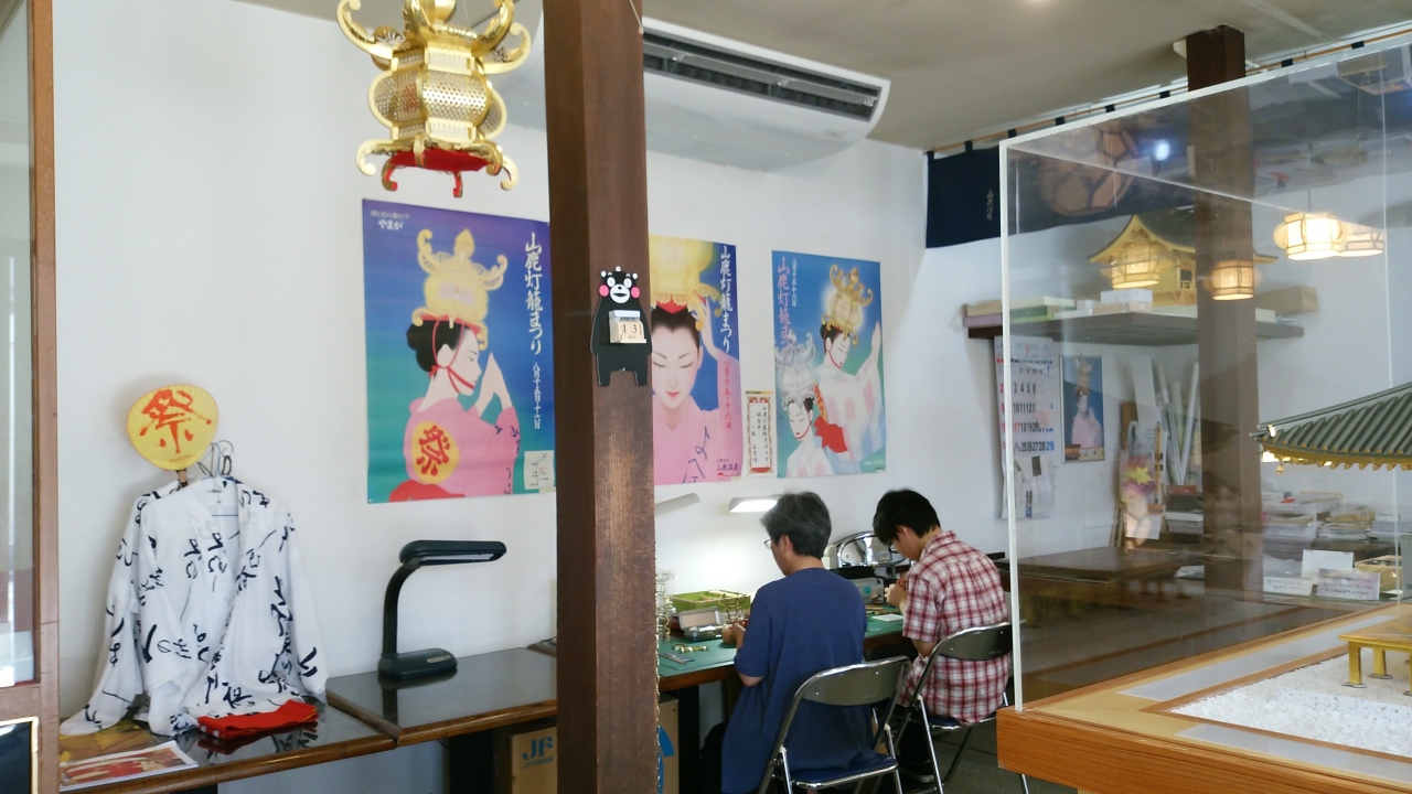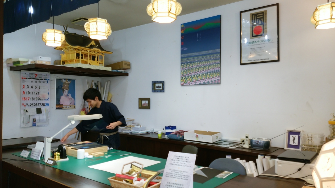 別館では灯籠師の実演が行われており、身近に見ることができる。灯籠師は現在5名で最近若い人が3名になって活気が出てきたそうである。