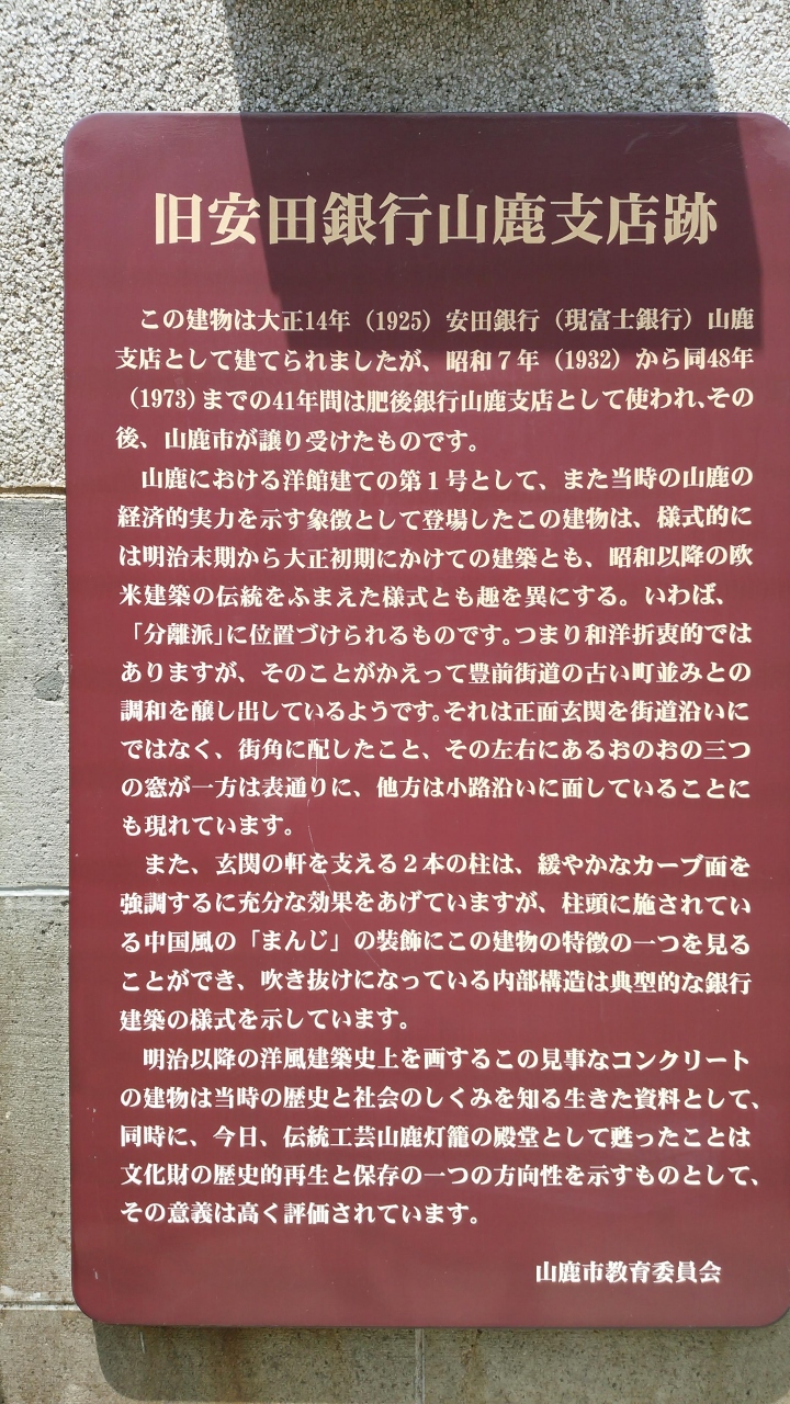 山鹿の伝統工芸「山鹿灯籠」の数々の名品などを展示してある施設である。建物は1925年に建てられた安田銀行山鹿支店で趣がある。平成14年に登録有形文化財の指定を受けている。