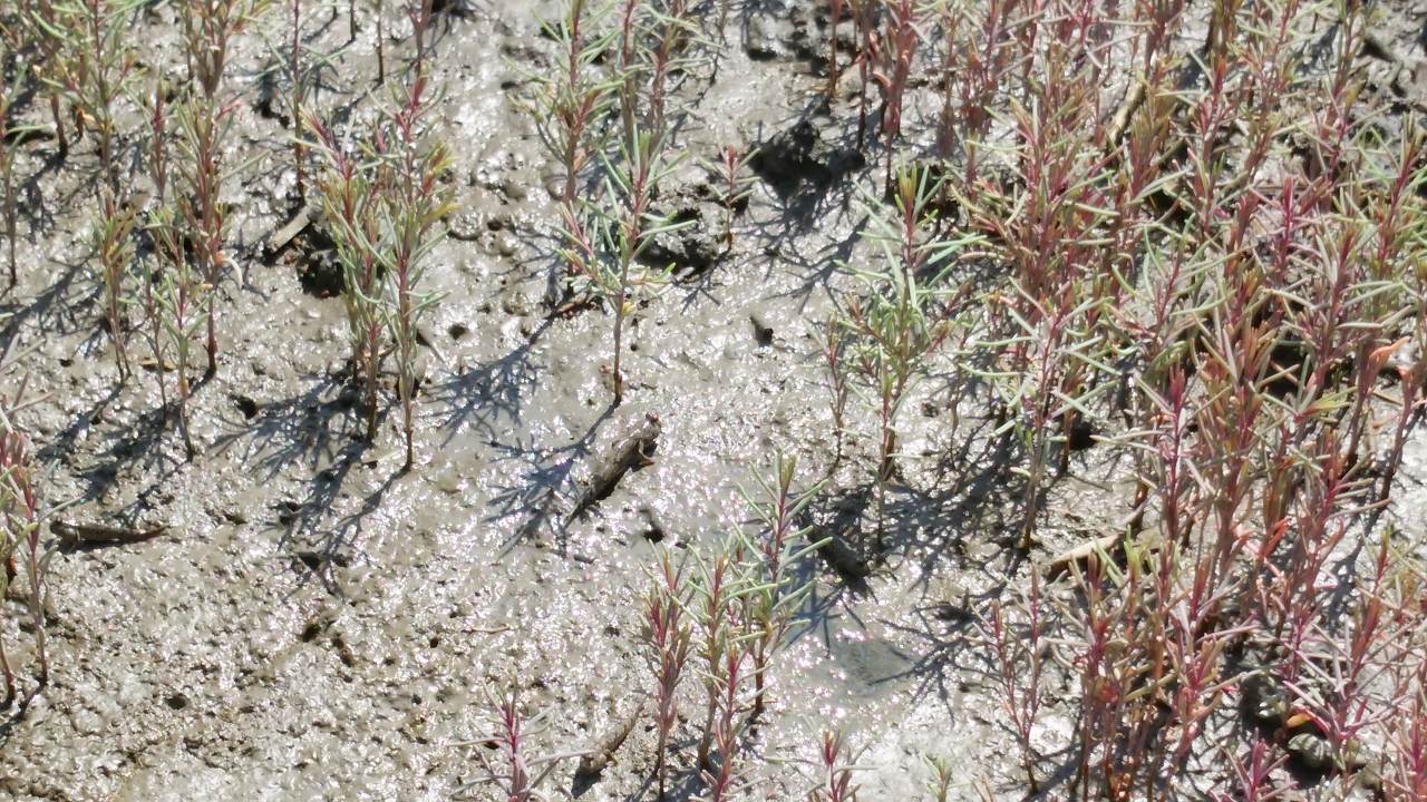 行ったときはちょうど引き潮で小さなムツゴロウやトビハゼなどを見ることができた。また遠くの海岸線沿いには無数の鳥たちが見られた。双眼鏡があればよく見えたと思うが肉眼では遠すぎて鳥の種類などはわからなかった。