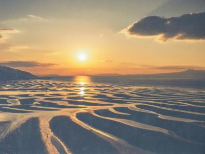 引き潮で干潟が現れる時でないと見事な干潟の景観は見られないという。特に夕日の時の干潟はすばらしい。このときは満潮であった。- 旅行時期