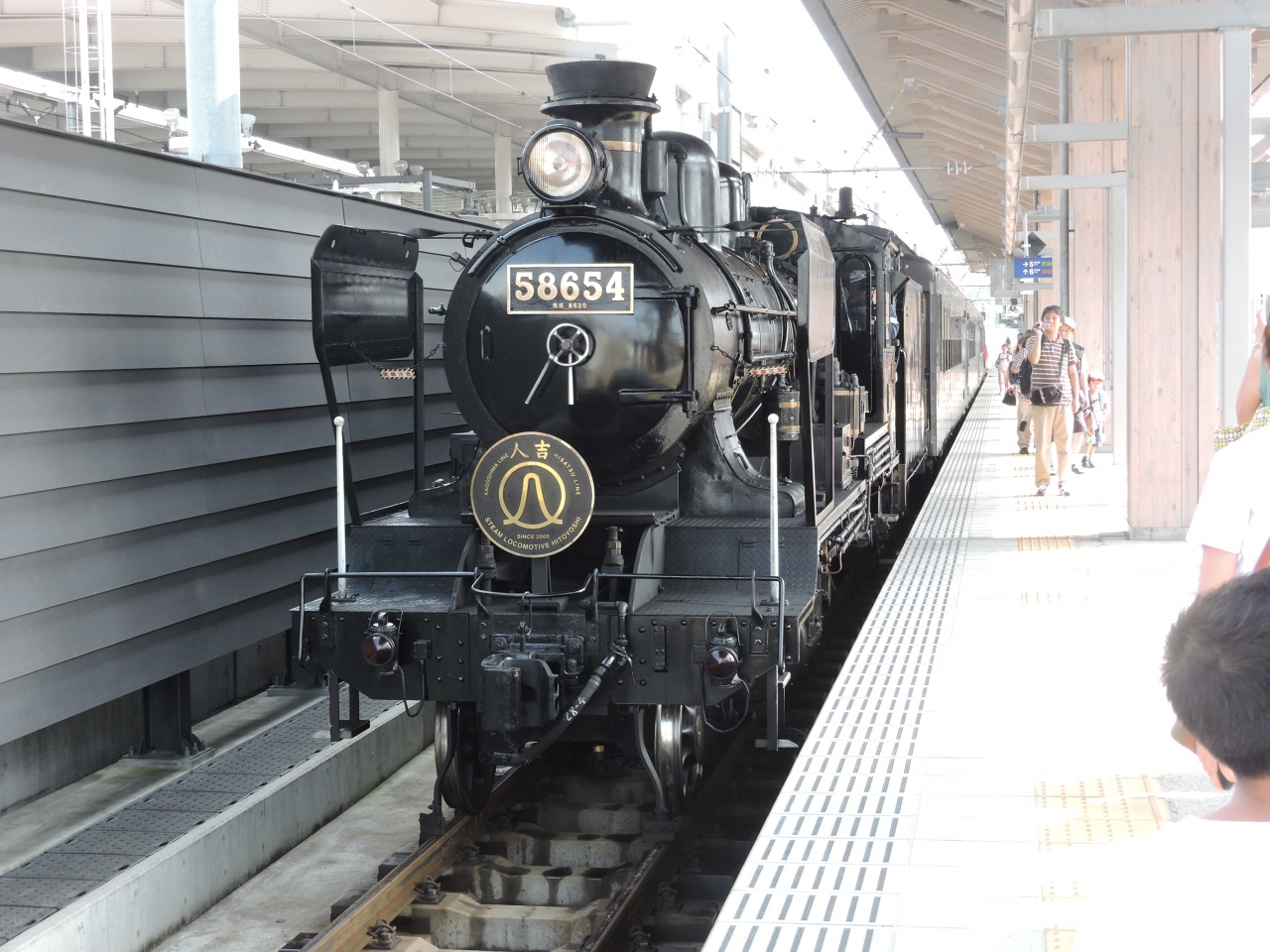 鉄道ファンにとってあこがれの大正11年生まれのSL8620型蒸気機関車が牽引するSL人吉号は、なかなか乗車券が手に入らないいつも満席である。