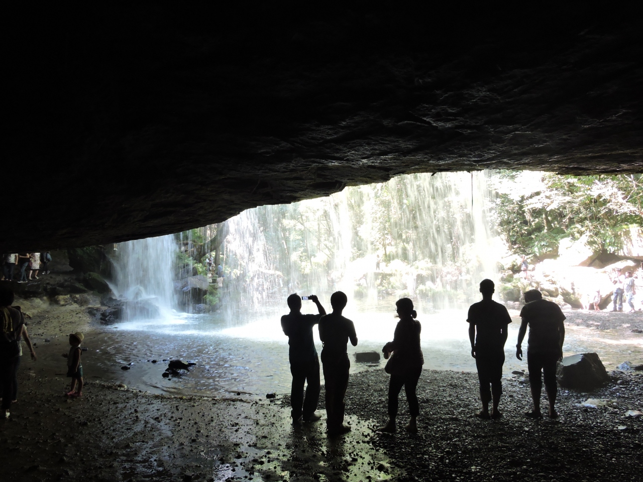 この滝が人気があるのは、滝の裏側にまわることができる「うらみ(裏見)の滝」であるところだ。裏側の空間がとても広いことで知られている。滝の裏側からは水のカーテン越しに幻想的な風景を眺めることができる。