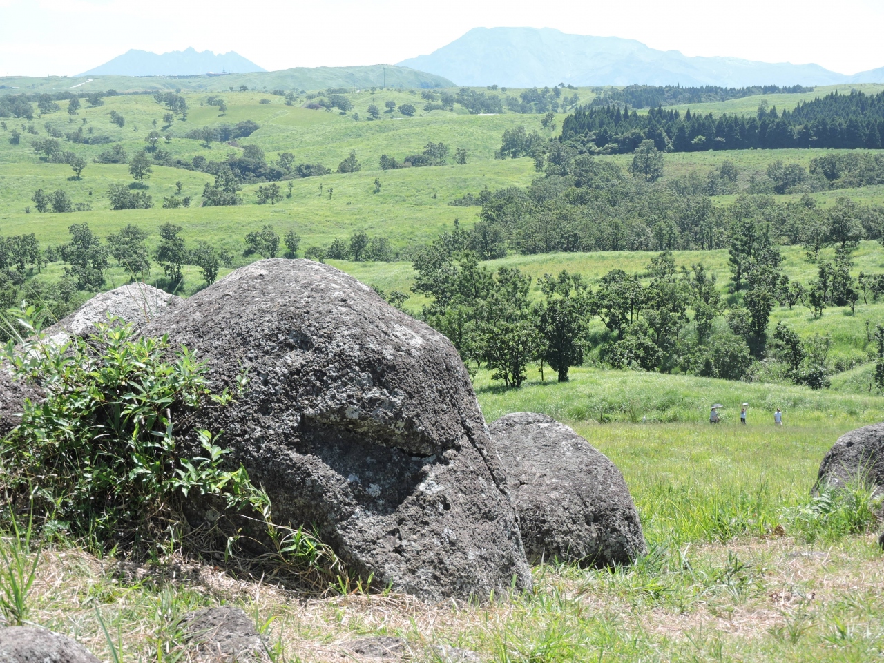 丘に登れば360度の大絶景が広がっており、阿蘇五岳の涅槃像や祖母・傾の山々、九重連山などを見渡すことができる。緑の草原が広がっておりさわやかな風が吹いている。