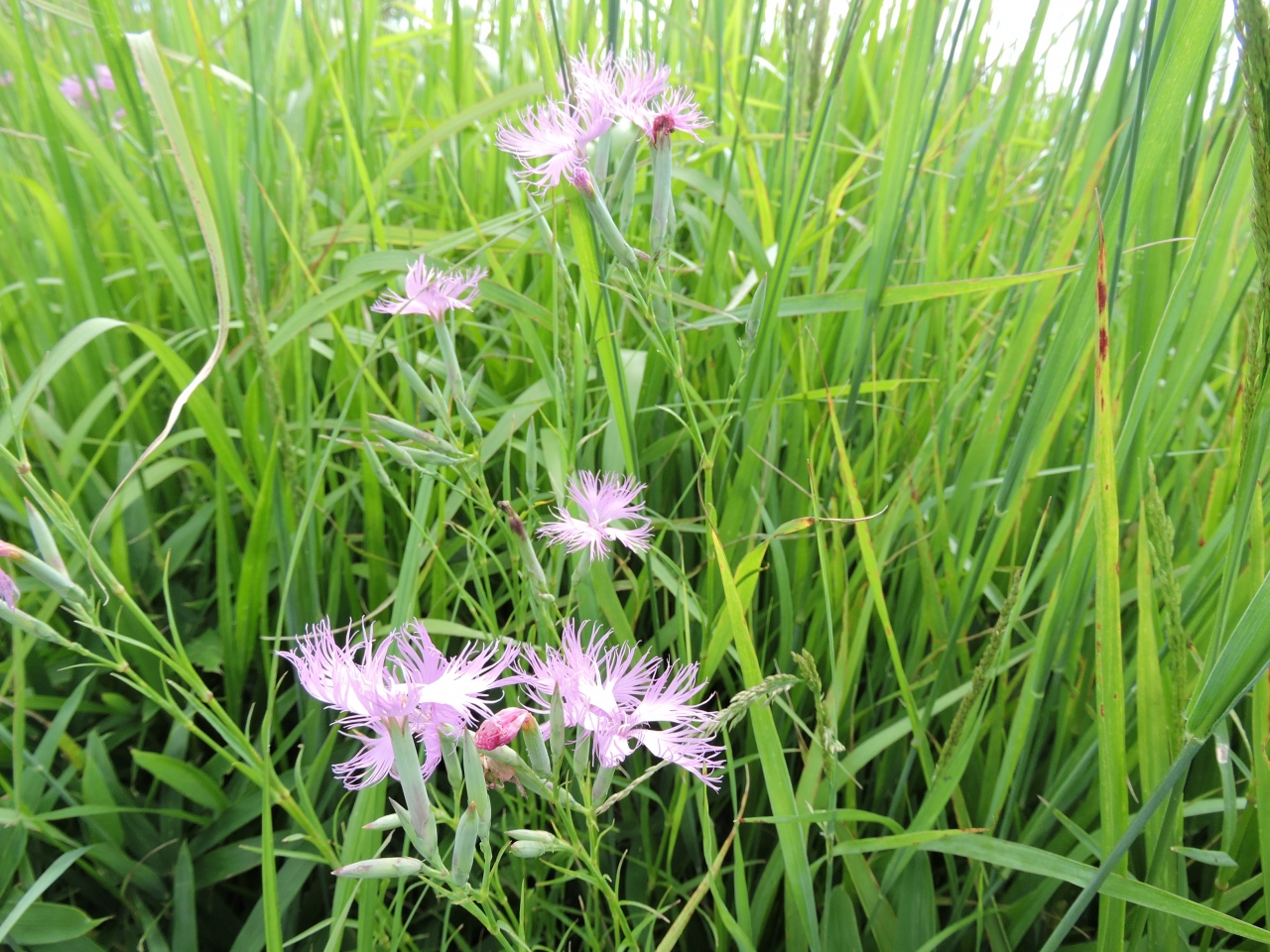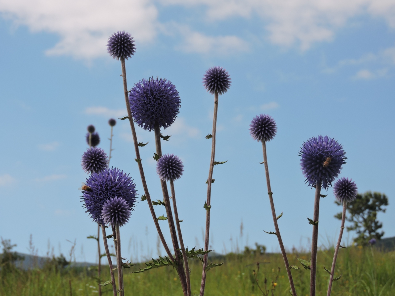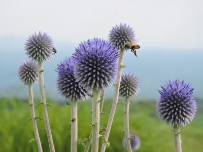 ヒゴタイの花は今頃が最盛期でかわいらしい紫色の花がたくさん咲いていた。私はこの時期の公園が好きである。さわやかな高原の風を浴びながら公園内を一周すると気持ちよい。小川のせせらぎも疲れをいやしてくれる。