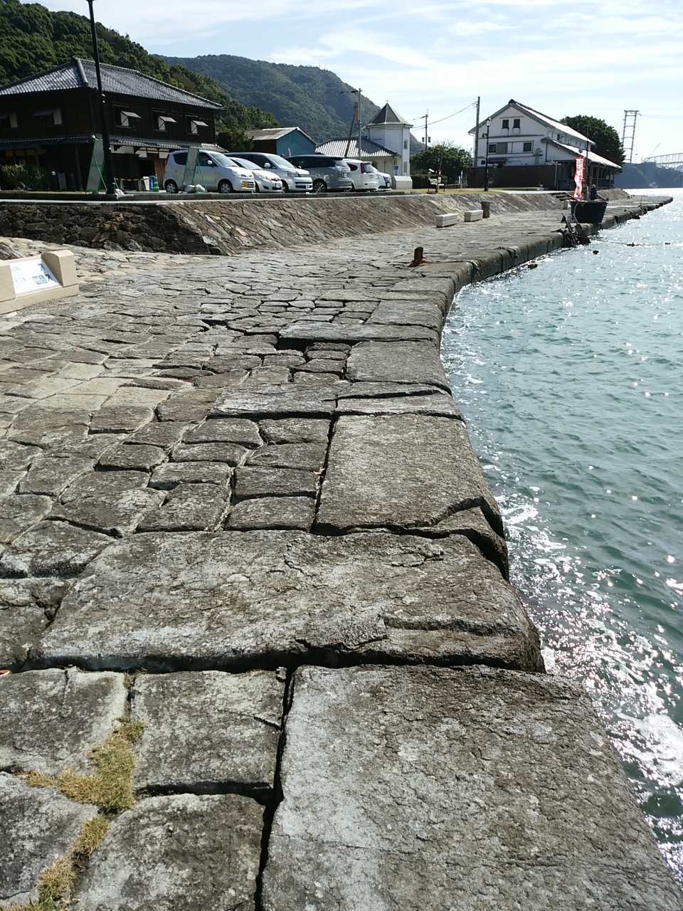 熊本駅9時05分発の列車は満員で立っていかなければならなかった。9時59分に三角駅に到着する。手続きをしてスタート。九州海技学院や旧裁判所跡の法の館・伝統工芸館まで平坦な道を歩いて行く。法の館ではいろいろな展示がしてあった。そのあと山道に入り三角岳の麓を歩いて展望台に。ここからは三角西港や天草五橋の1号橋など海が見渡される眺めの良いところである。その後、三角西港に行き、石積みの埠頭や水路・建造物などを見てまわる。特に国指定重要文化財の明治日本の産業革命遺産となった、全長756mの石積み埠頭は見ごたえがあった。