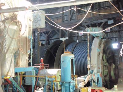 地下270mまで上り下りする竪坑の巻き上げ機などは巨大である。実に見ごたえがある。