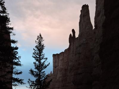 ブライスキャニオンのホテルに泊って、朝日の鑑賞にでかける。朝6時30分にホテルを出発する。サンライズポイントには7時40分に着くが、日の出の方向に雲がかかっていて残念ながら見ることができなかった。