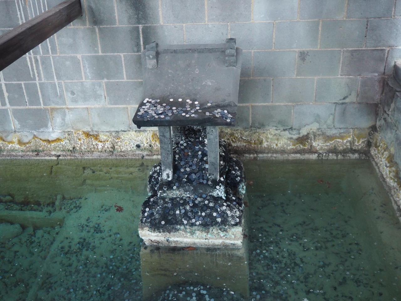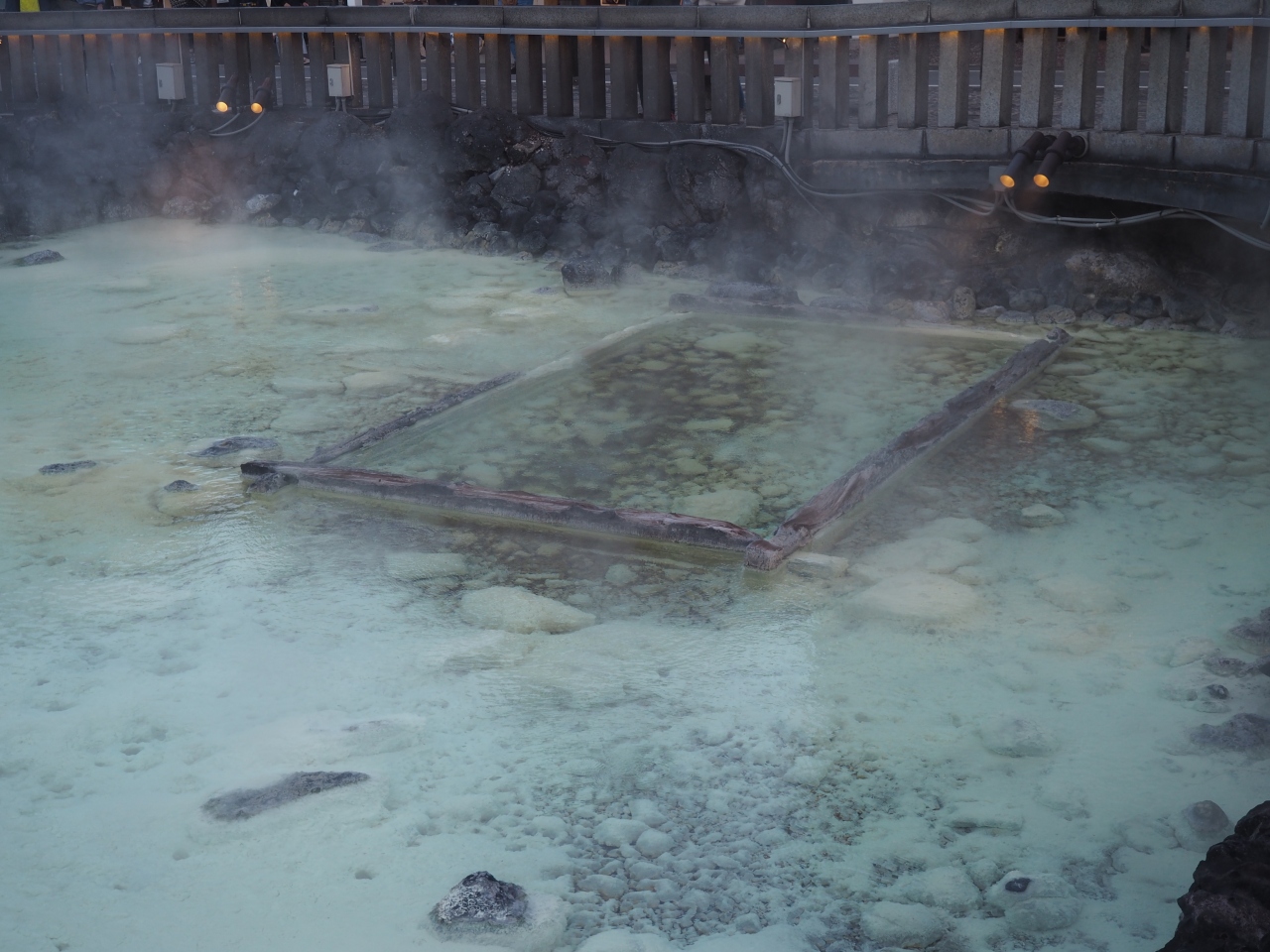 将軍おくみ上げの湯枠は草津温泉の湯畑の湯もみショーが行われる熱の湯に近い湯畑の中にあります。木枠で囲まれていた場所が将軍への湯を運んだ草津の湯が取り出された場所です。何気に見逃してしまいそうな感じの場所ですが、ここから草津の湯を汲み江戸まで運んだということに価値がありそうです。強い酸性の湯であるのは、江戸まで運んだ価値があったと思われます。