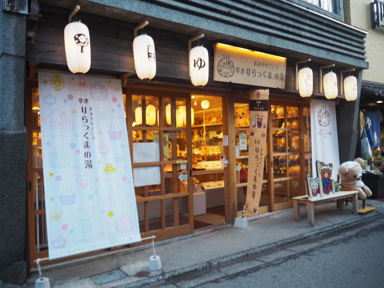 湯畑から西の河原公園へと歩いていく途中にりらっくまの湯というお店があります。りらっくまは日本の有名なキャラクターで、バッグ、ぬいぐるみ、筆記用具などにそれぞれリラックマが描かれています。草津独自のキャラクターもあり、いい記念やお土産になりそうです。好きな人には特別な価値があるものだと思います。