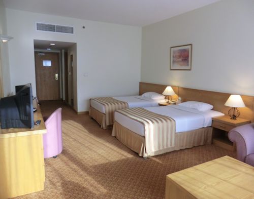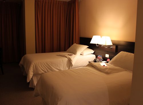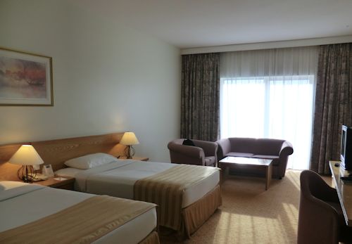 ホテルの建物は、隣りのさらに高級ホテルと同じ敷地内にあり