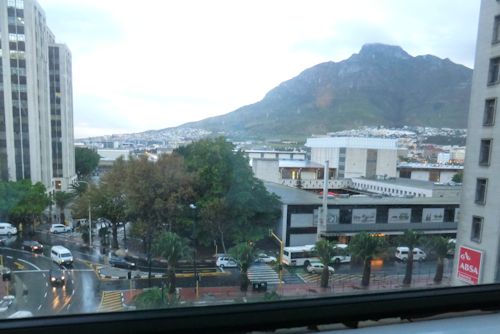 窓からは国境の向こう側、シウダーフアレスの街が見え