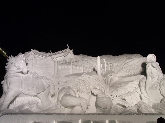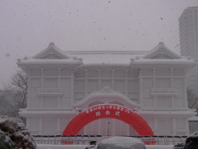 8丁目 歌舞伎座の大雪像前で 開会式会場でしたので
