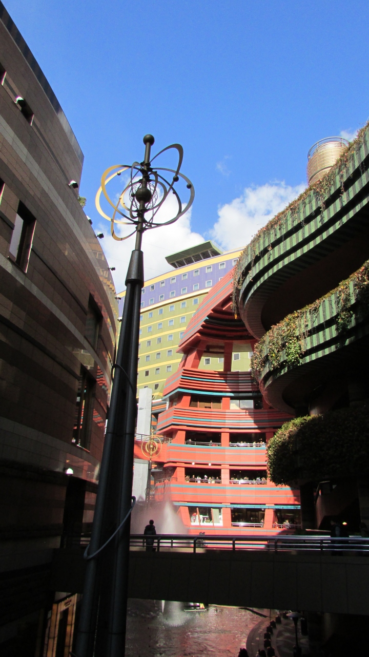 駐車場のこともあり、ショッピングモール、レストラン、シネマコンプレックス、劇場、ホテル、オフィスビルなどからなる大型複合施設のキャナルシティへ