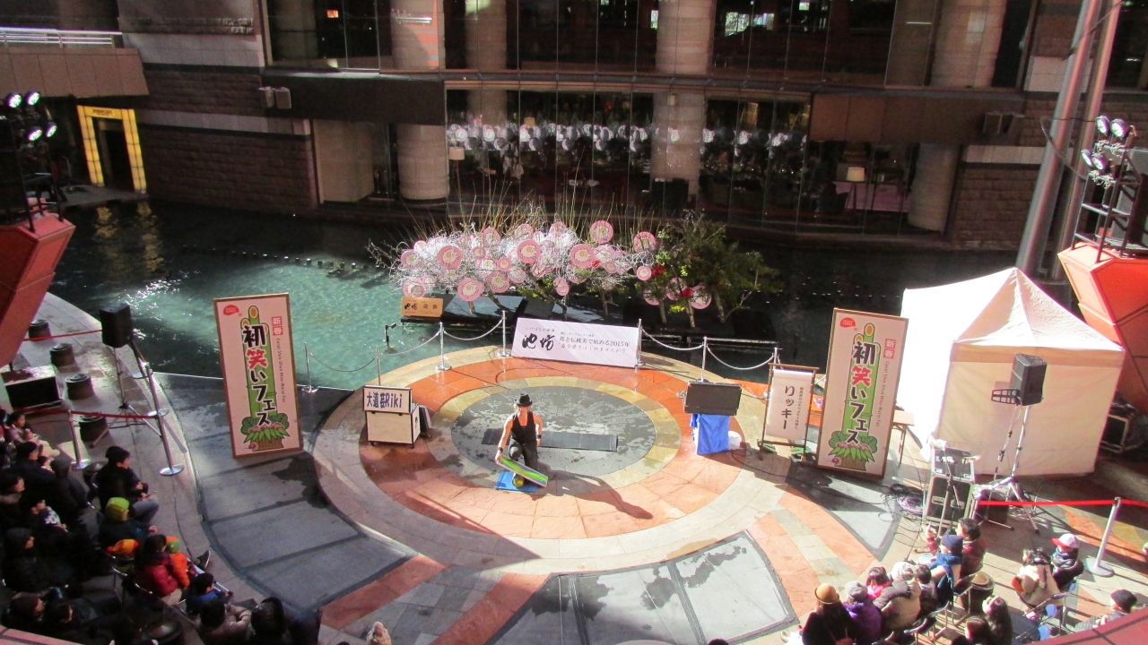 中央のステージでは、世界各国のストリートパフォーマンスやライブが日々行われ、無料で観覧できるそうで、当日は神無月氏のパフォーマンスhttp://ameblo.jp/coron-kannazuki/day-20150101.htmlが開催されていたようです。