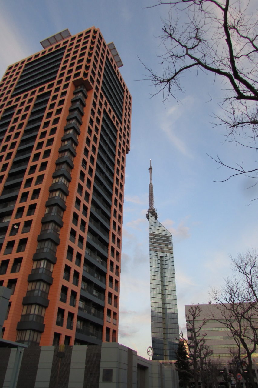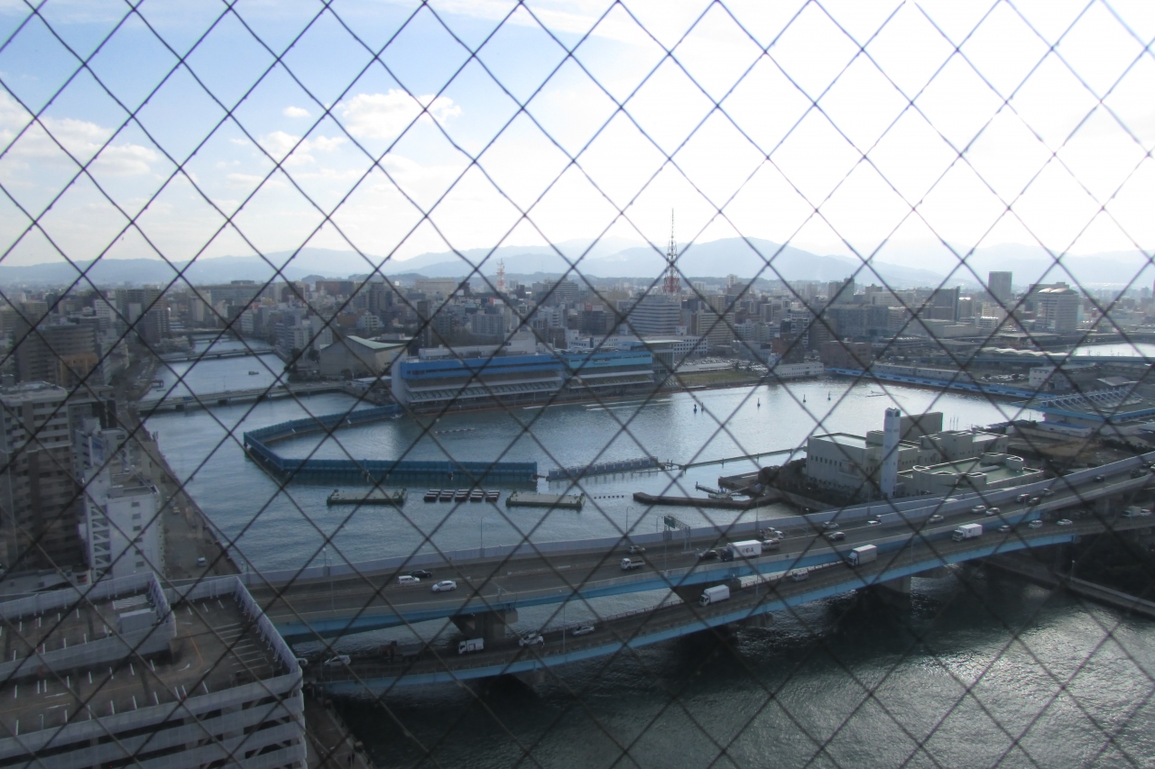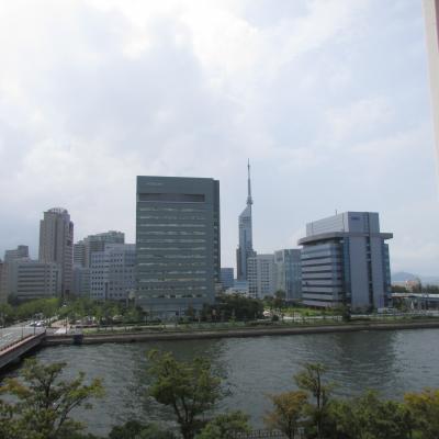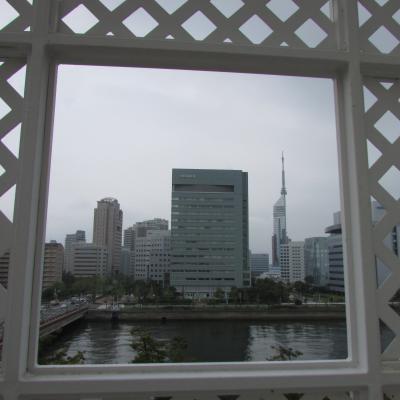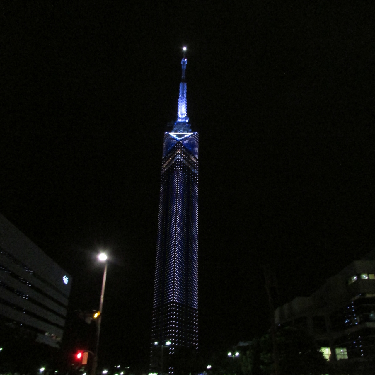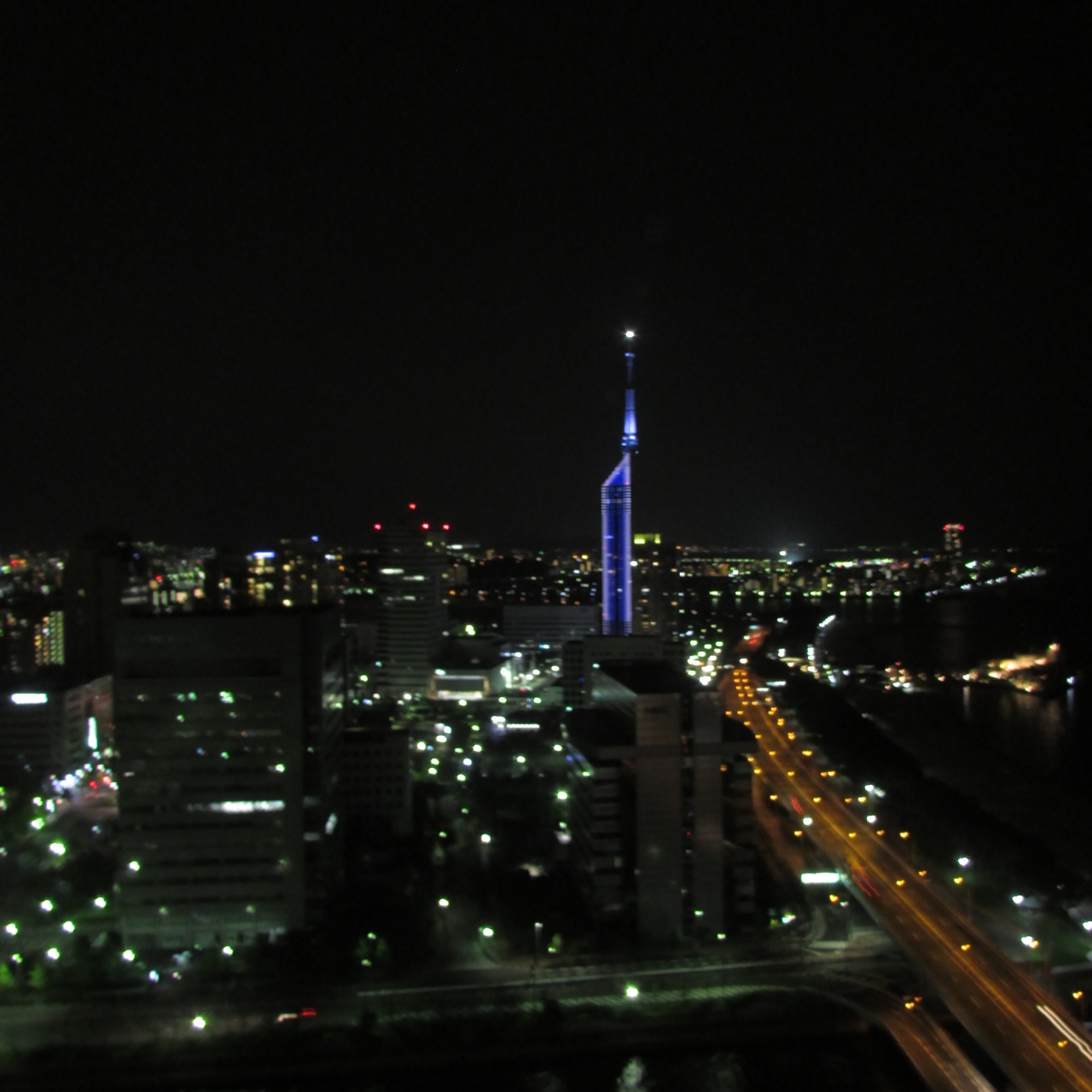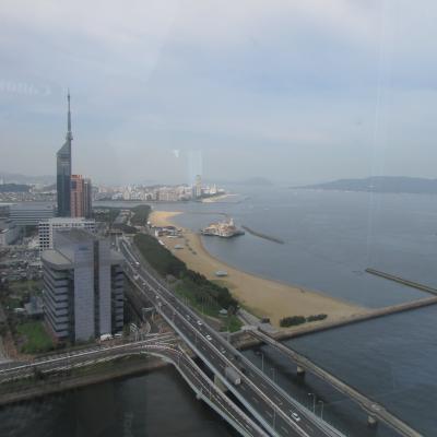 福岡市西副都心のシンボル的存在ですが、少し離れると周辺はマンション等が立ち並び見えませんし近くでも単独で見えるところがありません。ヒルトンシーフォークステルのタワー側の部屋の中より、美しい福岡タワーを眺めることができました。