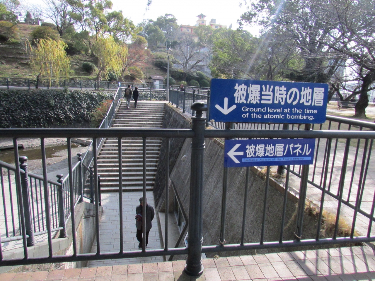 園内には被爆当時の地層も残されていますが、そこには原爆によって壊された家の瓦やレンガ、3000度の熱で焼けたガラスなどが今も大量に埋没しています。