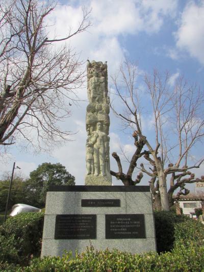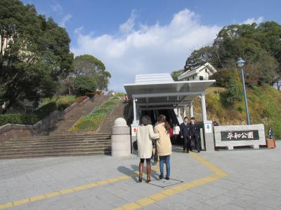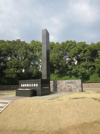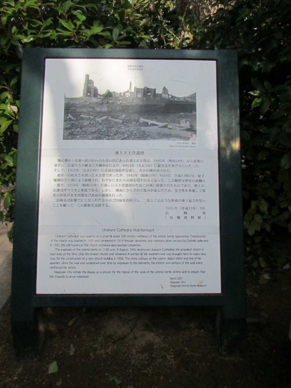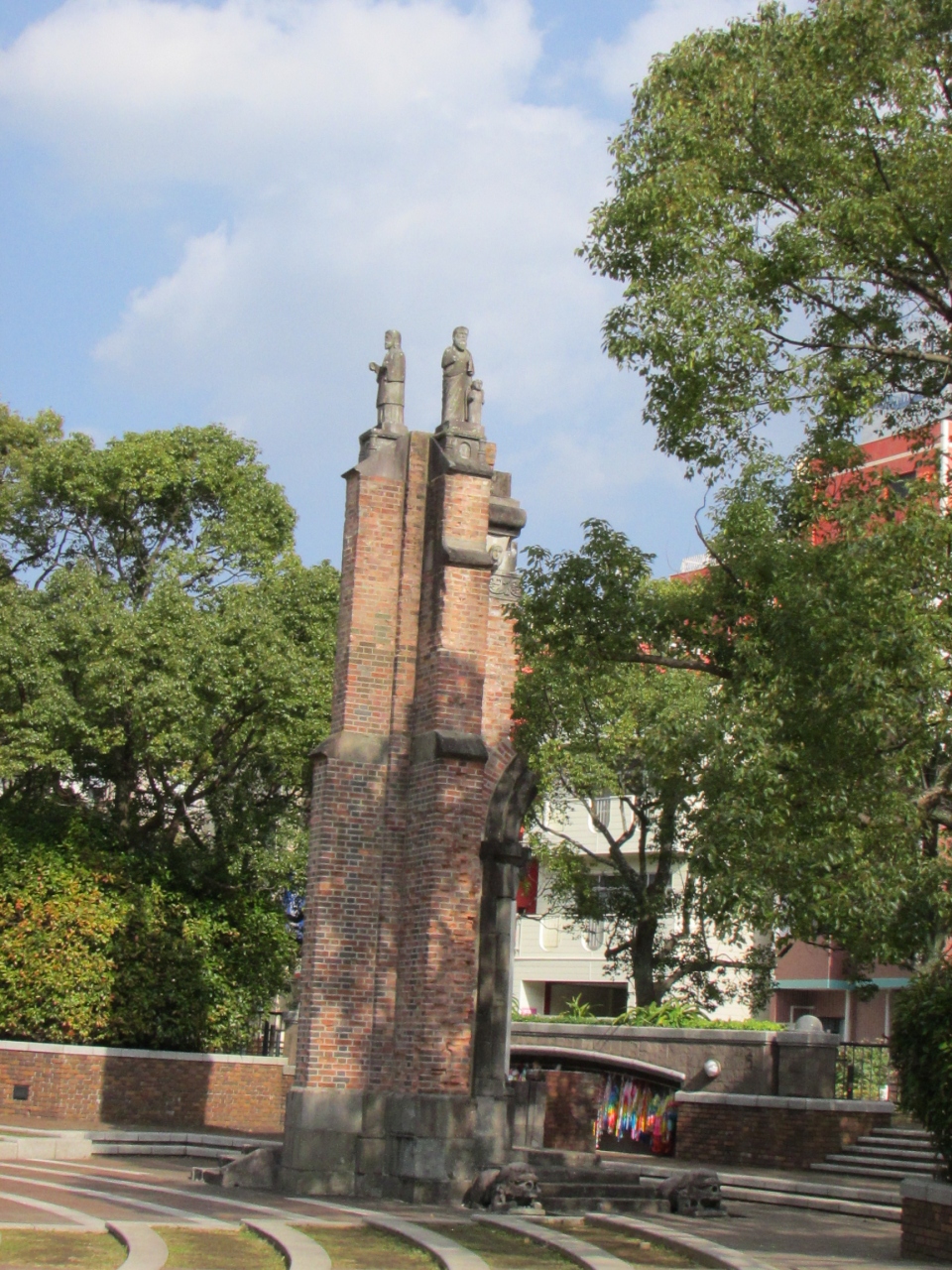 爆心地モニュメントや 浦上天主堂の煉瓦壁と聖人像があり