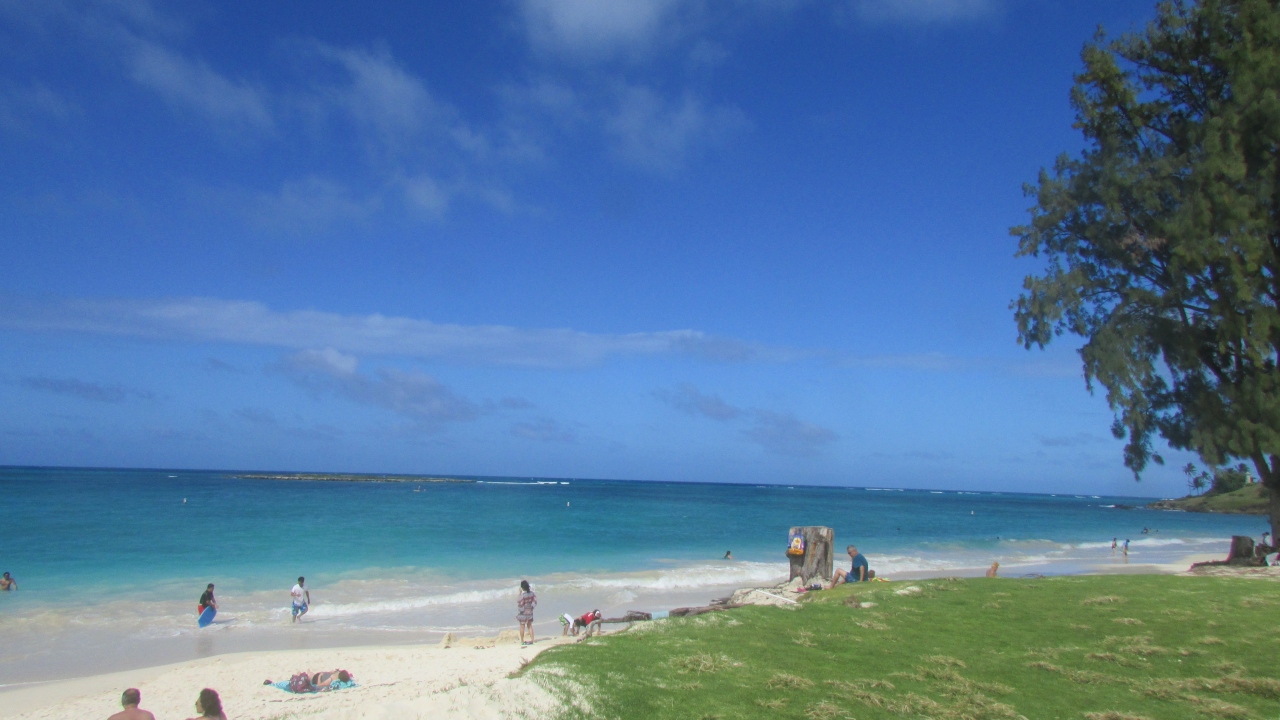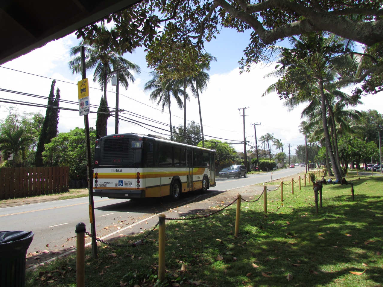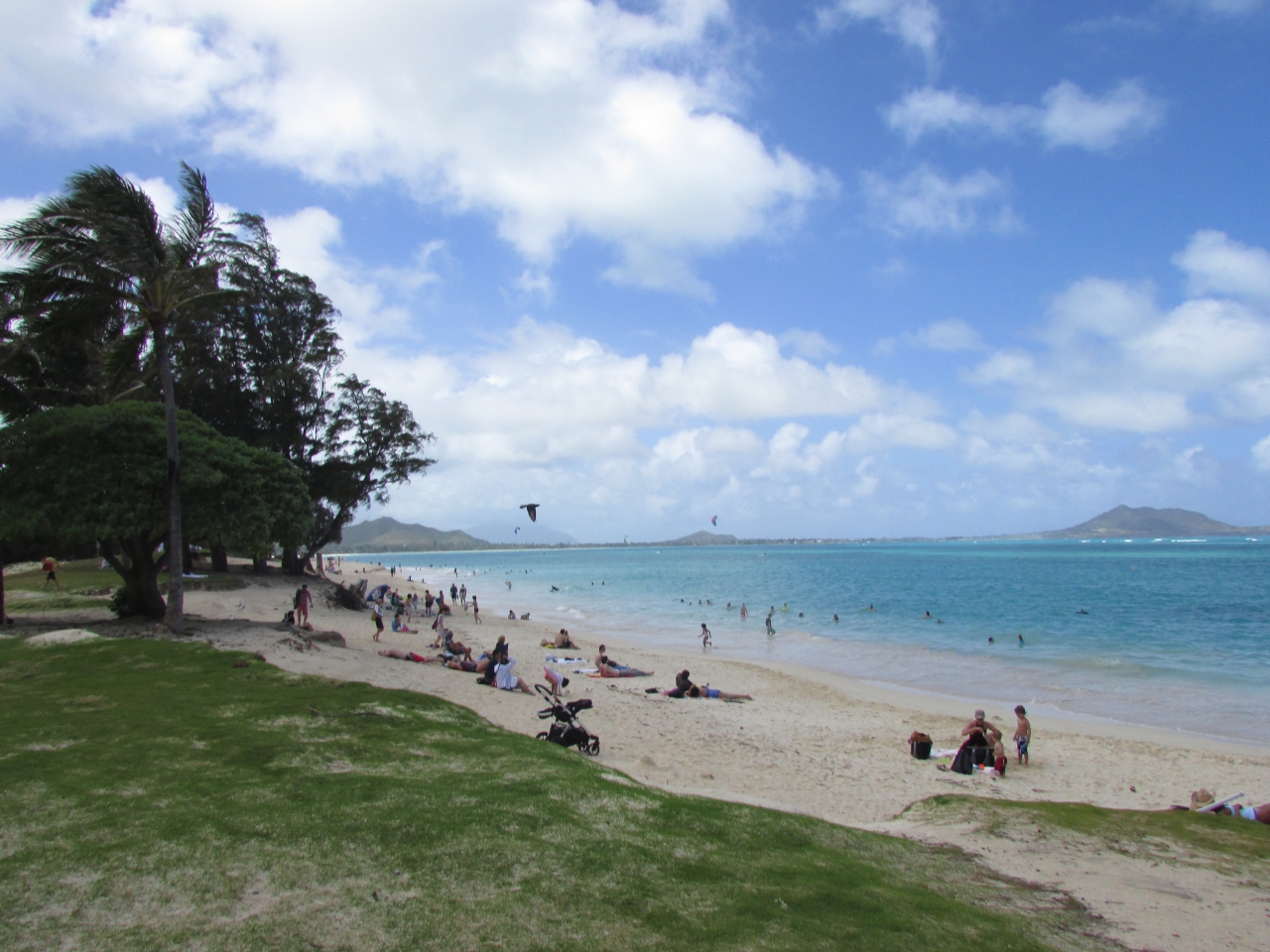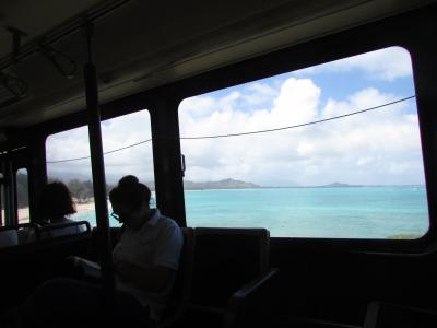 アラモアナセンターからカイルアタウンまでバスで行き、70番に乗り継いでビーチまで1Hに1本程便数が少ないので要注意