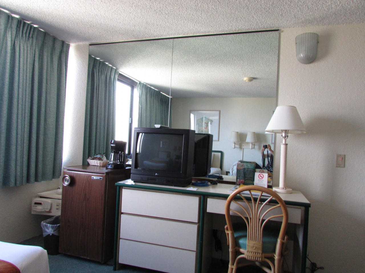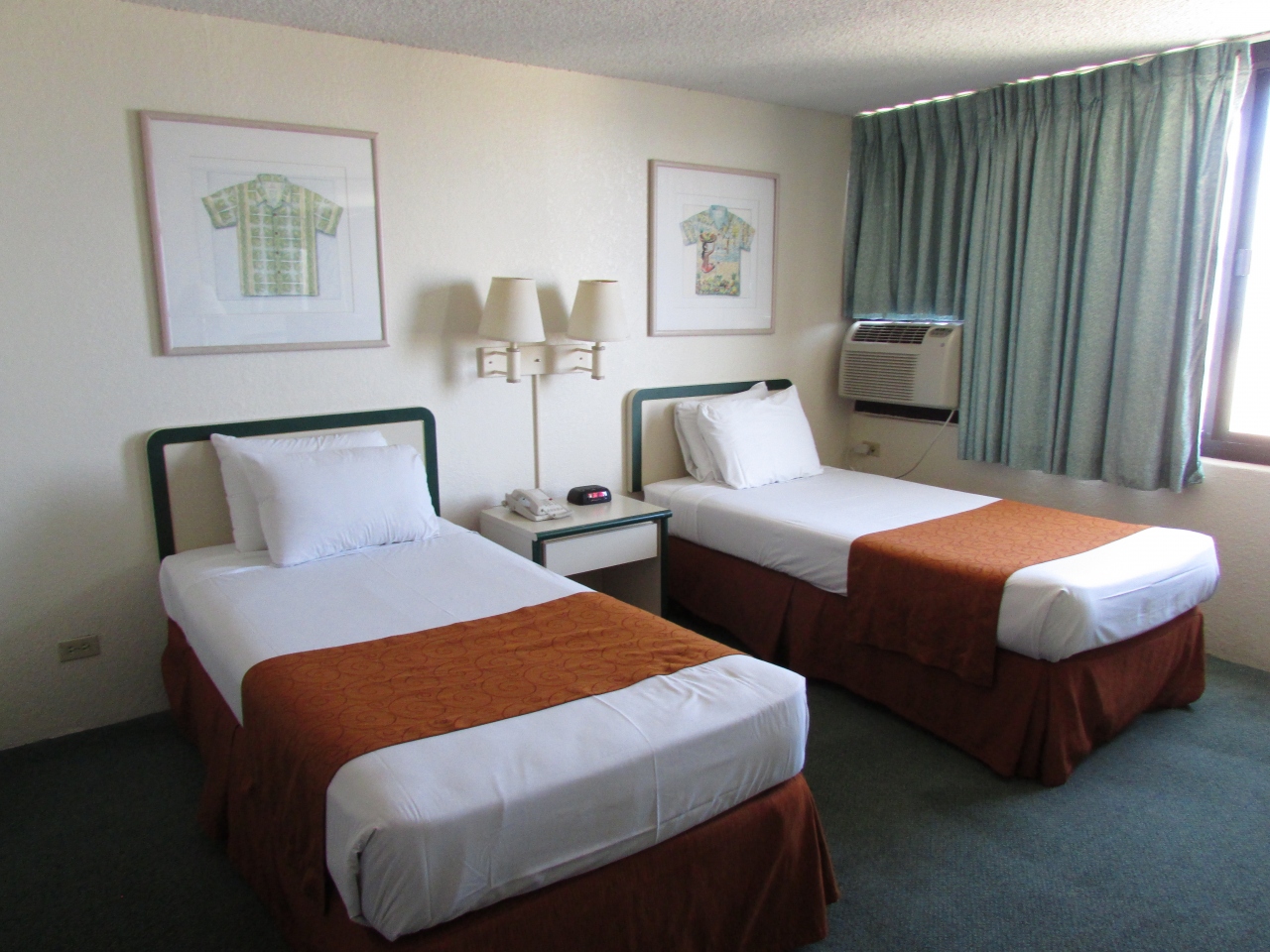 高いビルで外見がましだが、部屋は上階でしたので海が見えましたが、
