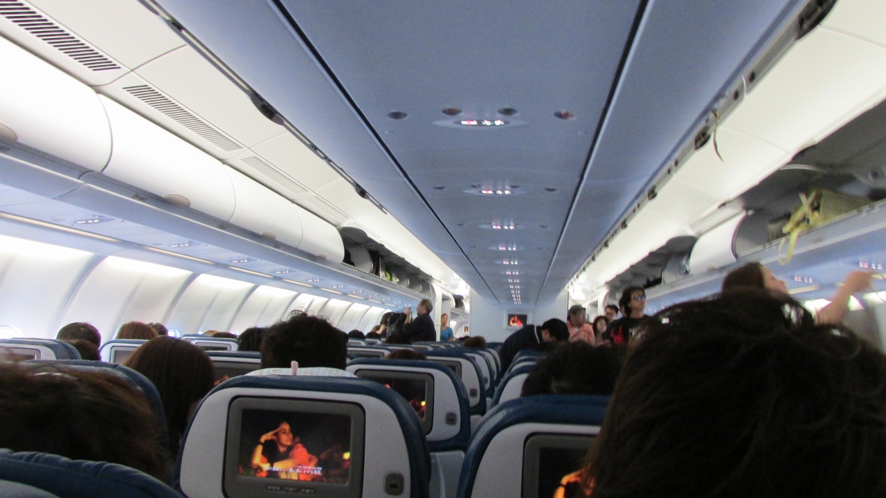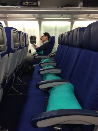 行きものずごく空いていたが、2人席に日本人は2人で、とにかく狭い