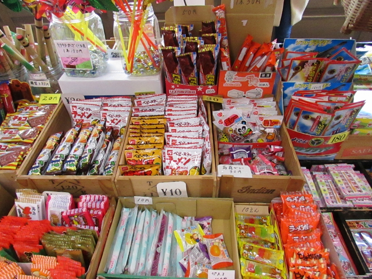 1階の店舗では、昔懐かしい駄菓子やおもちゃが所狭しと並んでいます。