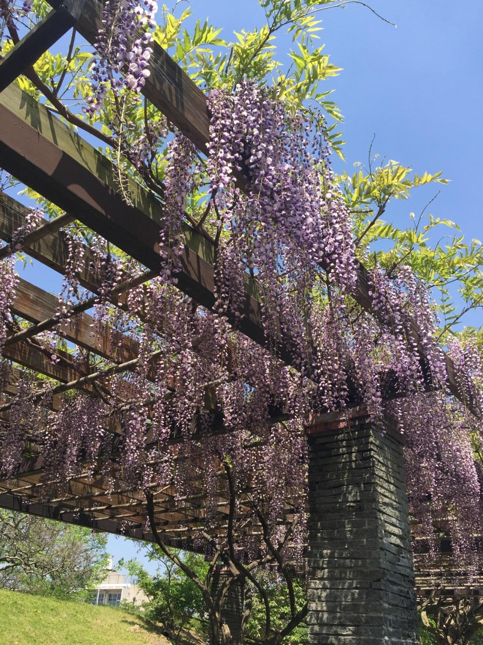 黒田長政が築城した福岡城の一帯は舞鶴公園になっています。お城自体は残っていませんが、お堀、石垣、櫓など所々に、当時の繁栄がしのばれます。桜の時期はお花見の名所で、ライトアップもされ、GW時は藤棚が人々を楽しませてくれます。