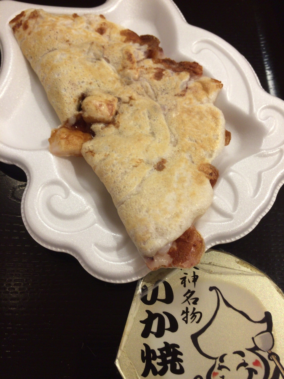 大阪阪神百貨店の名物が博多阪急にて食べることができます。薄いイカのお好み焼きのような物ですが、小腹がすいた時やおやつにぴったりです。お持ち帰りもできます。シンプルだけど昔ながらの味です。大阪在住時の懐かしい味です。