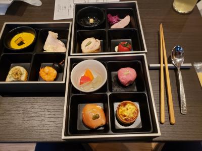 朝食は品数、美味しさ満点です。しかし、トレーが無くご飯とお味噌汁で両手がふさがり、おかずをそろえるのに4往復かかった。窓際で景色が良かったが、一番はしで往復か煩わしかった。- 旅行時期