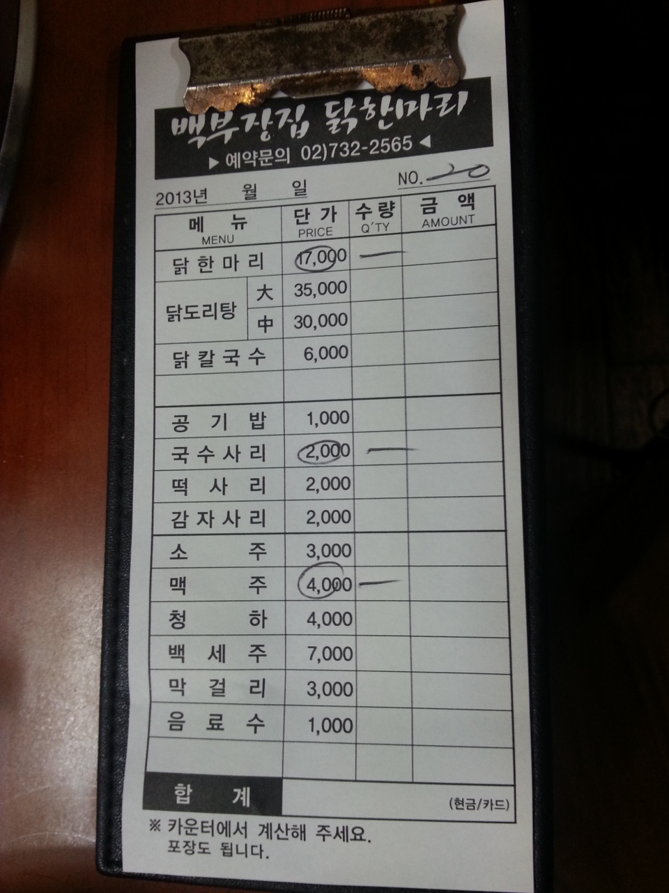 - タッカンマリを初めて食べたので比較出来ないが、かなりおいし。
