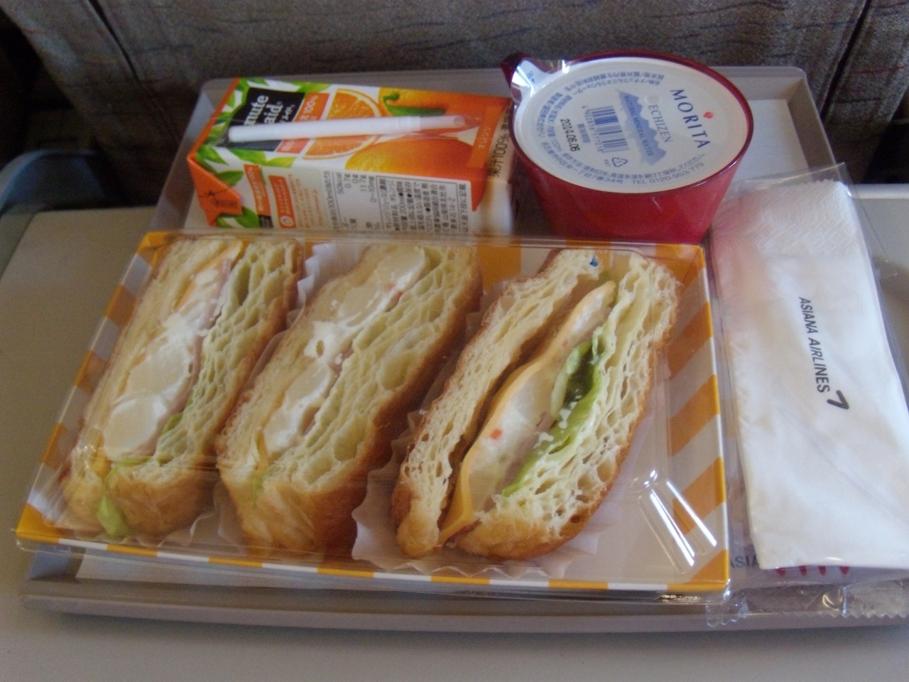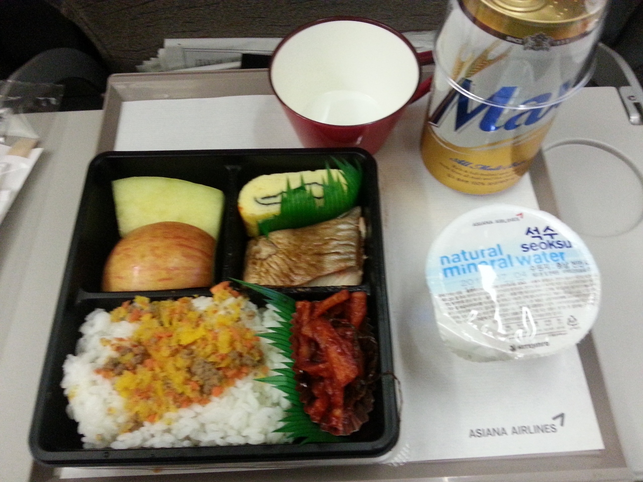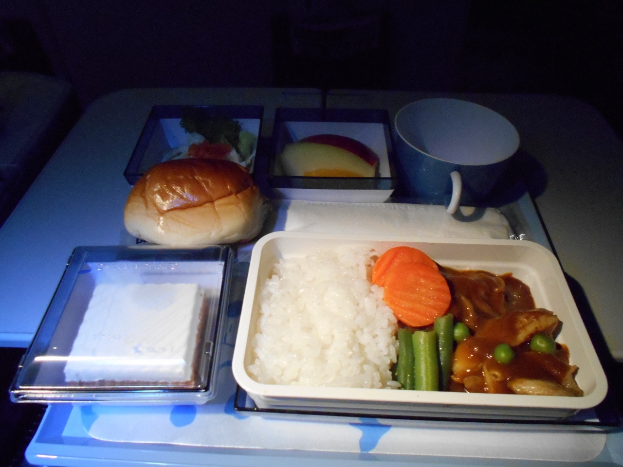 搭乗して、やはりビジネス席だったが、出て来た機内食はエコノミーのワンプレート。