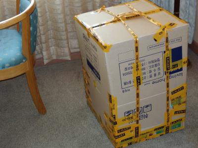 写真のダンボールの中には海苔が200パッケージ、ラーメンが25個入ってます。