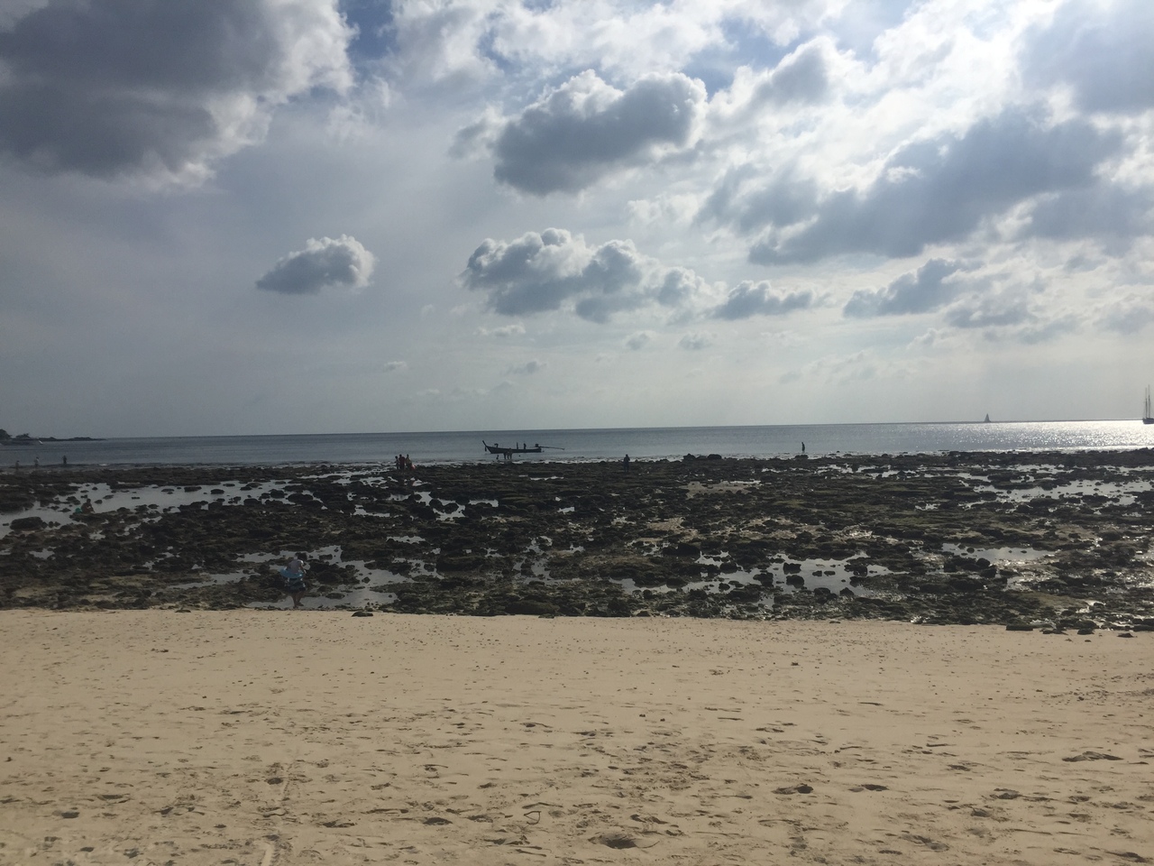 プライベートビーチは、この時期、朝と3時ごろは、干上がって、岩場がボコボコ出現して美しくなかったですが、歩いているだけで少し残った水中や干潟にいる小さな魚やいろんな生き物が見られるのでこれまた子供は大喜びです。