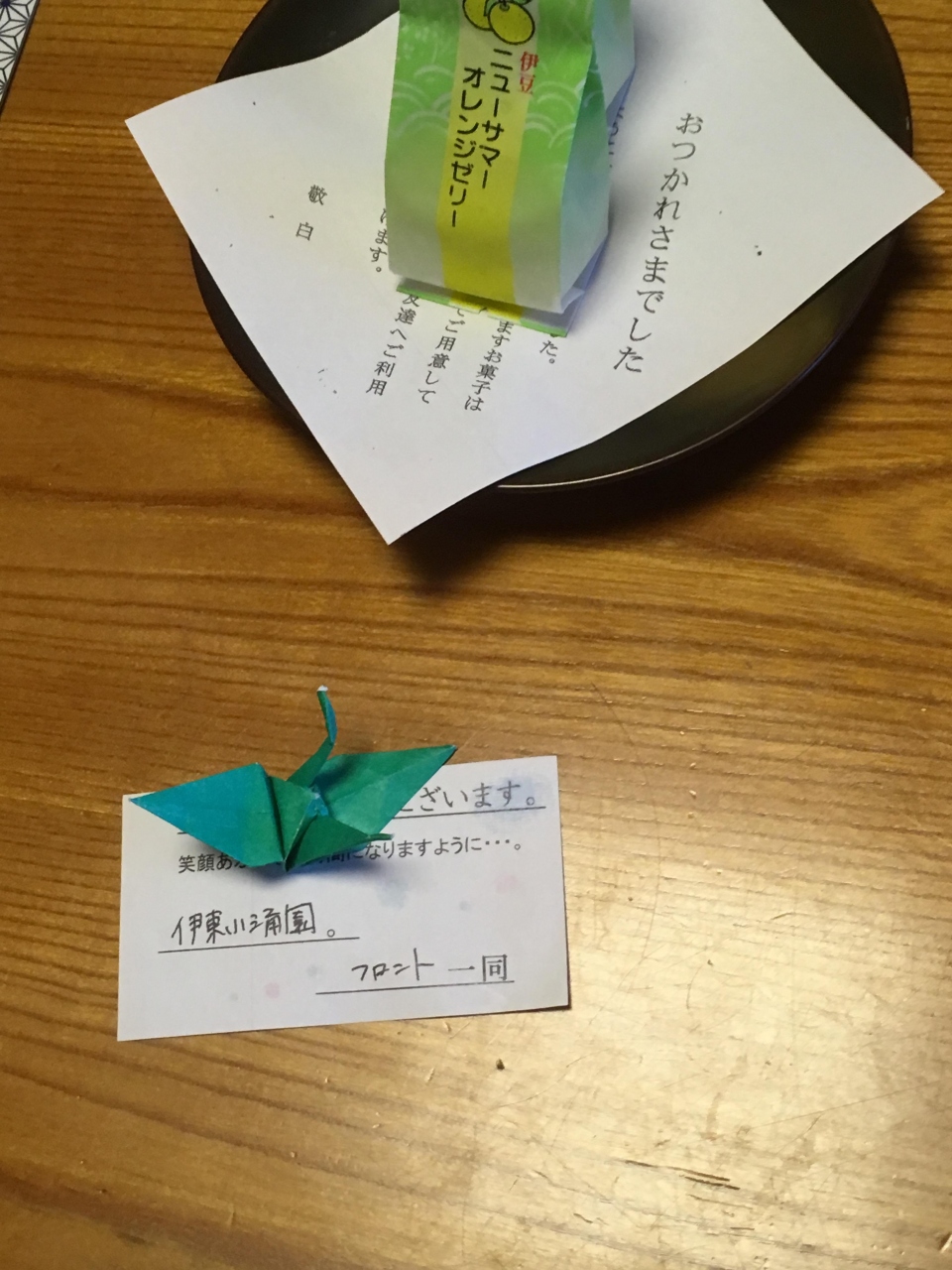 施設は古いのですが、スタッフが親切なのとお湯が豊富なのでそれなりに満足しています。隣に24時間営業のイオン系のスーパーがあり、ここでいろいろ買って持ち込めるところが気に入ってます。ちなみにこのスーパーでは地元の特産品が結構置いてあって、おみやげやさんより安いです。今回はしらすせんべいやオレンジあん入り和菓子、農協が作ったわさび漬け、地物の海苔など購入しました。どれもよかったです。- 旅行時期