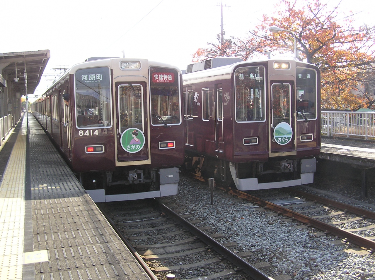 阪急梅田駅、高速神戸駅、宝塚(阪急)駅、天下茶屋駅、河原町駅の各駅から、阪急嵐山駅へ直通列車が運転されていた。