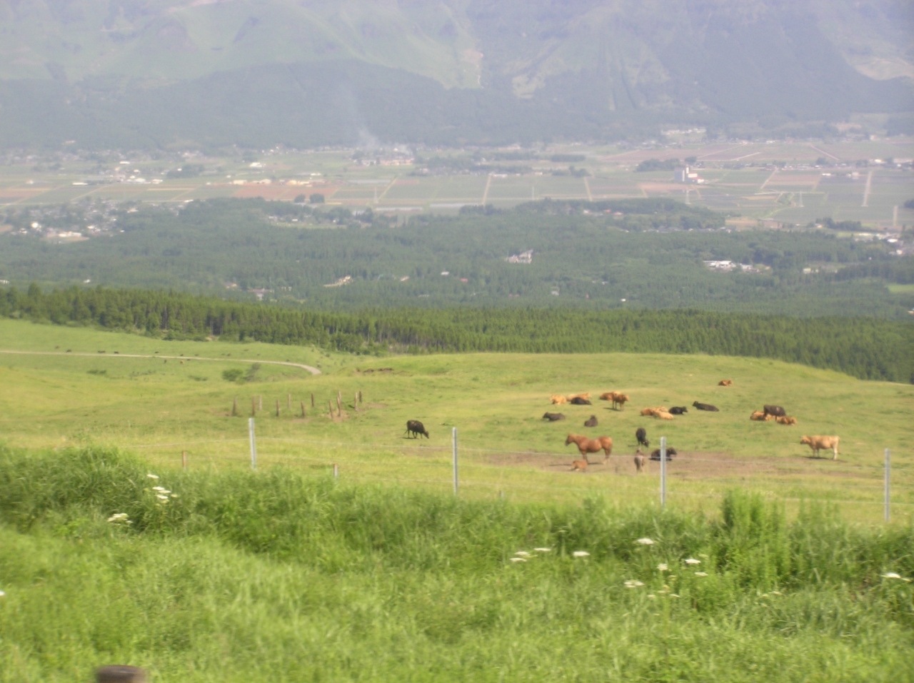 少し歩いていると、丘の方へ歩いていくと、牛が8頭、日向ぼっこをしている。