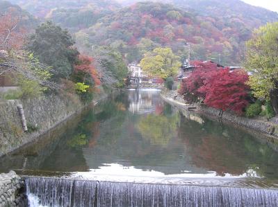 嵐山で有名な渡月橋は、人混みで左側通行で通行が規制されているというような状態で、警察官が交通整理をしていた。