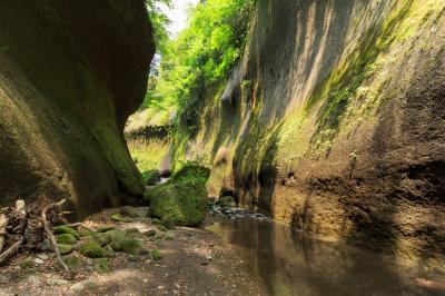 今現在地震の影響等もあり、入口が封鎖されていたりするので行く前に事前確認が必要です。渓谷沿いを歩くには、川の中を進んでいけるような装備が必要です。